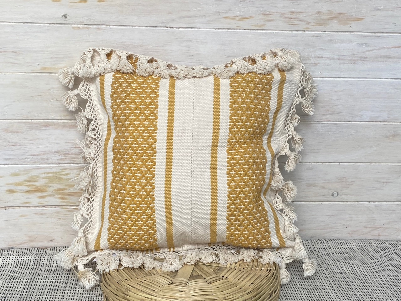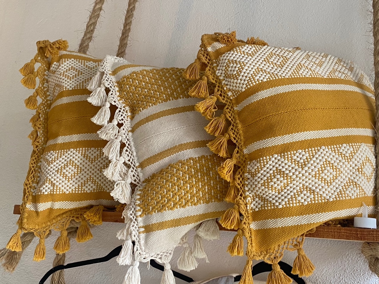 We offer you a seasonaI colour selection of 100% cotton pillows made with this technique, by our partner family in the vaIIeys around Oaxaca, México!