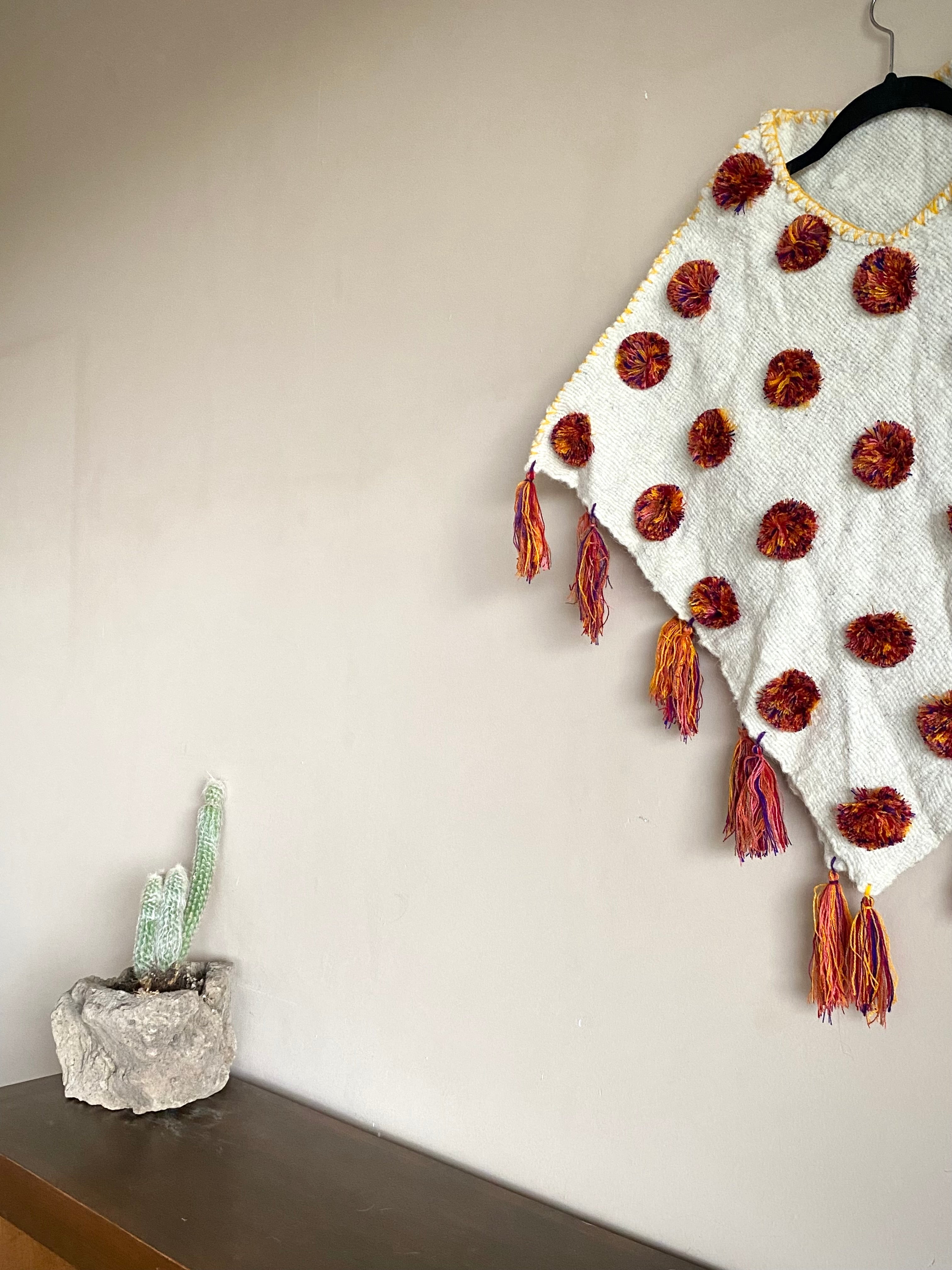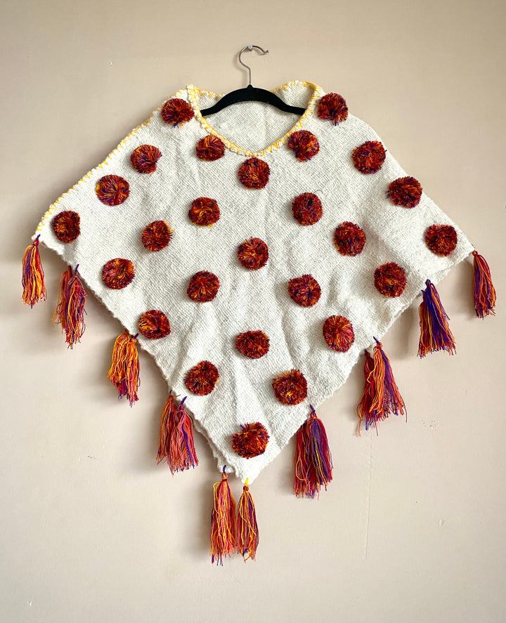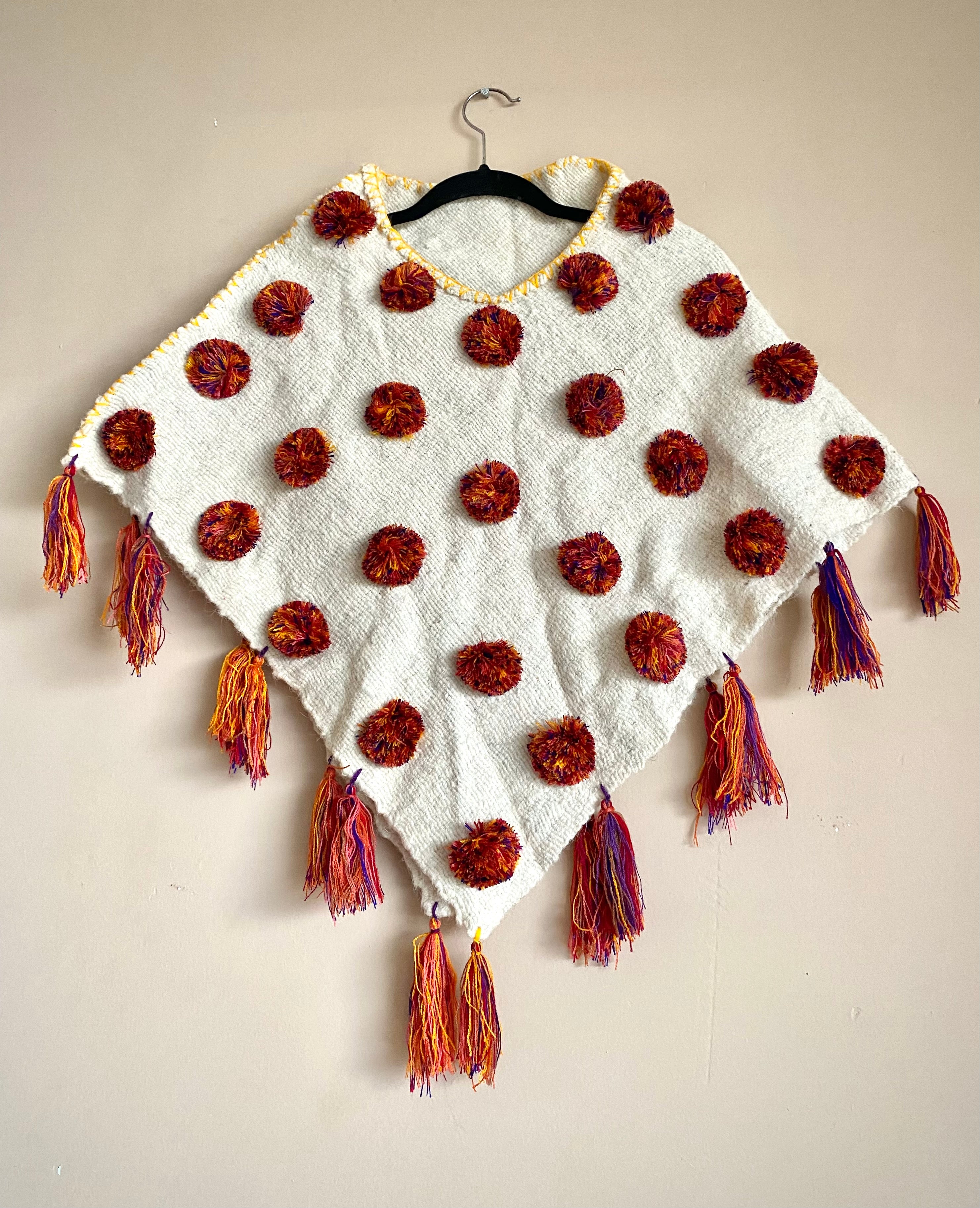 Kids' Pompom Wool TriangIe Poncho • Chiapas