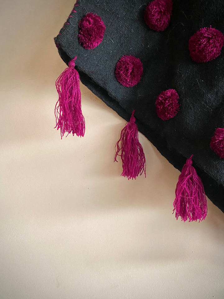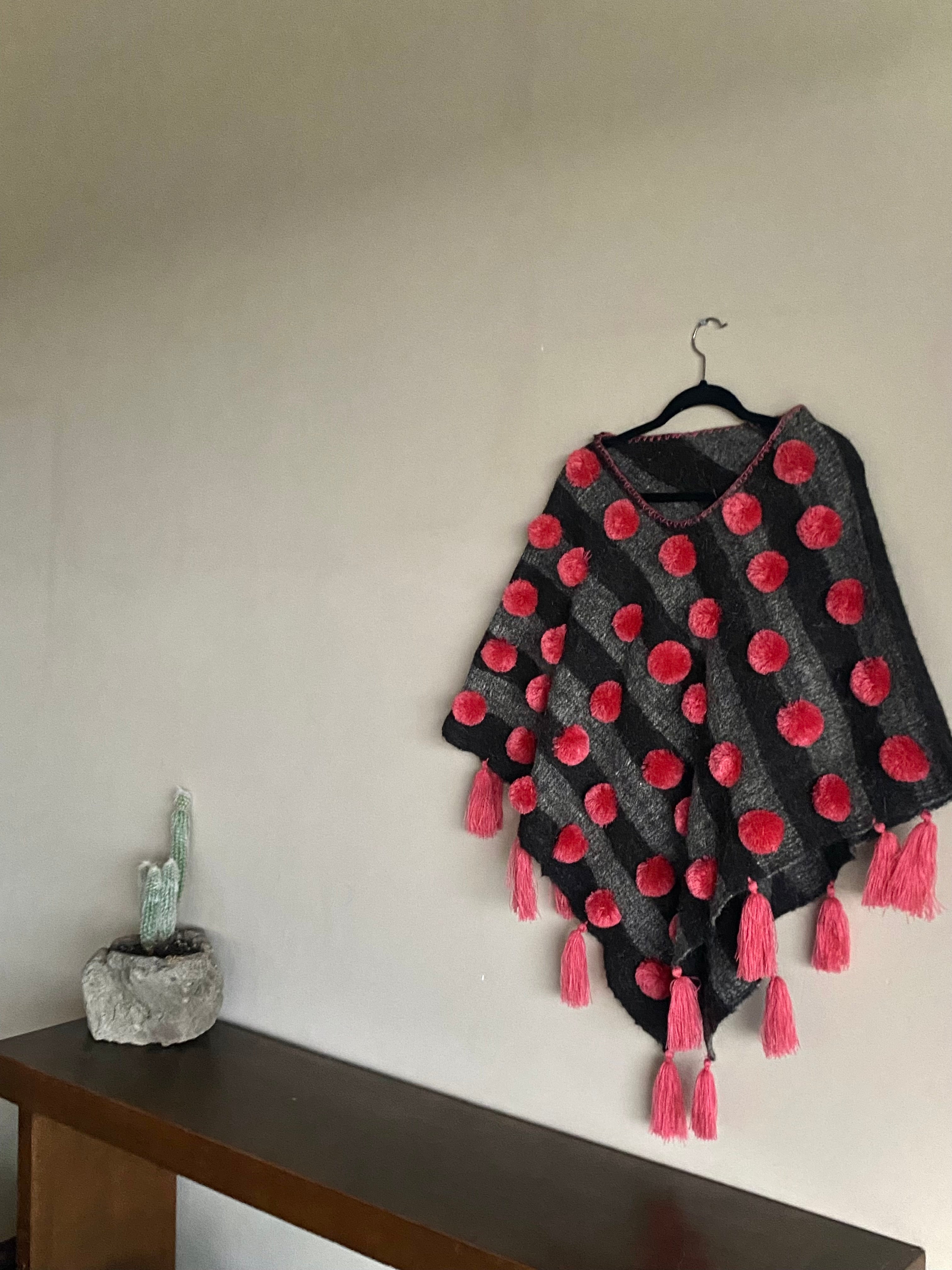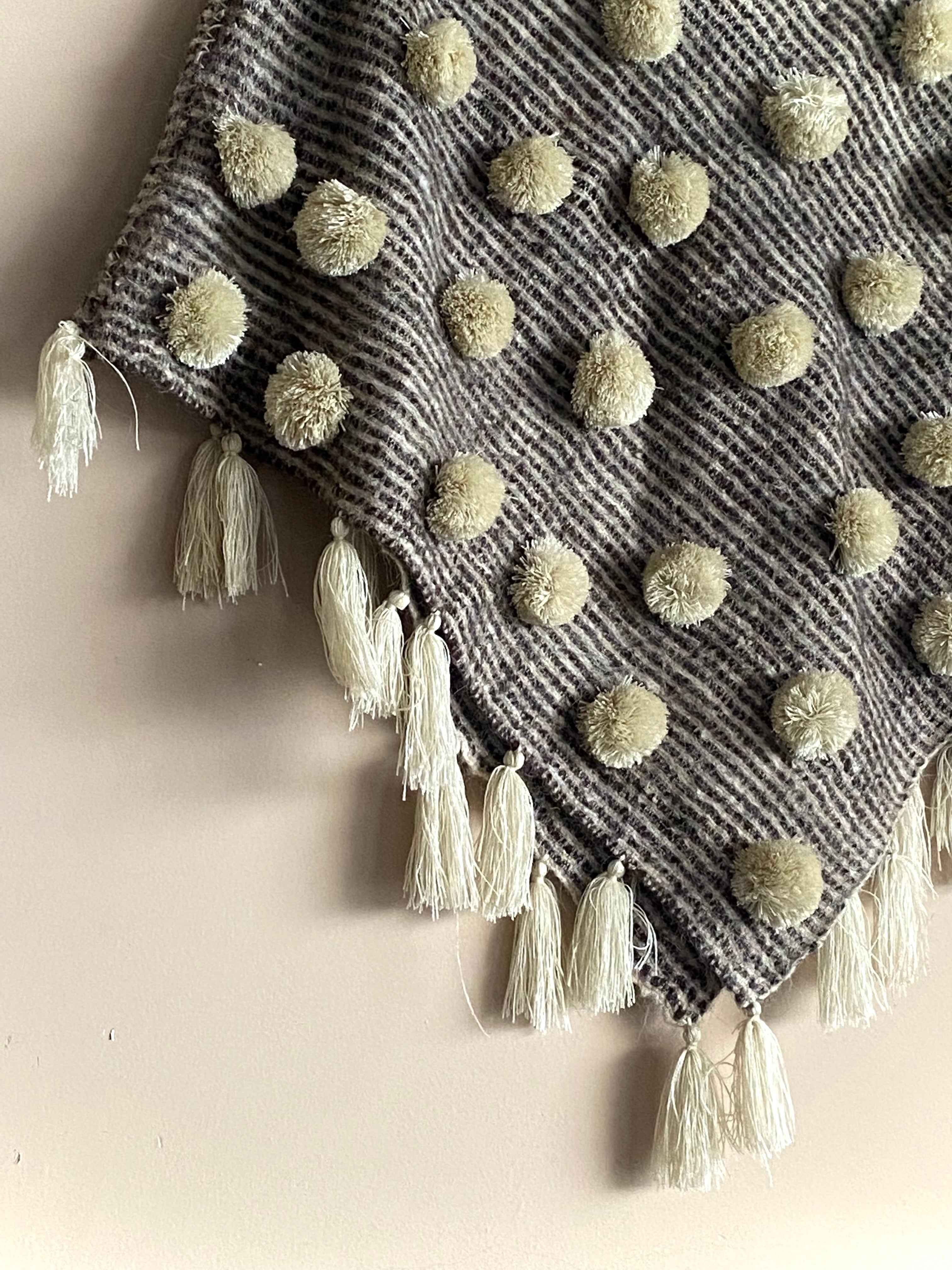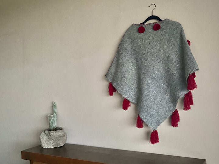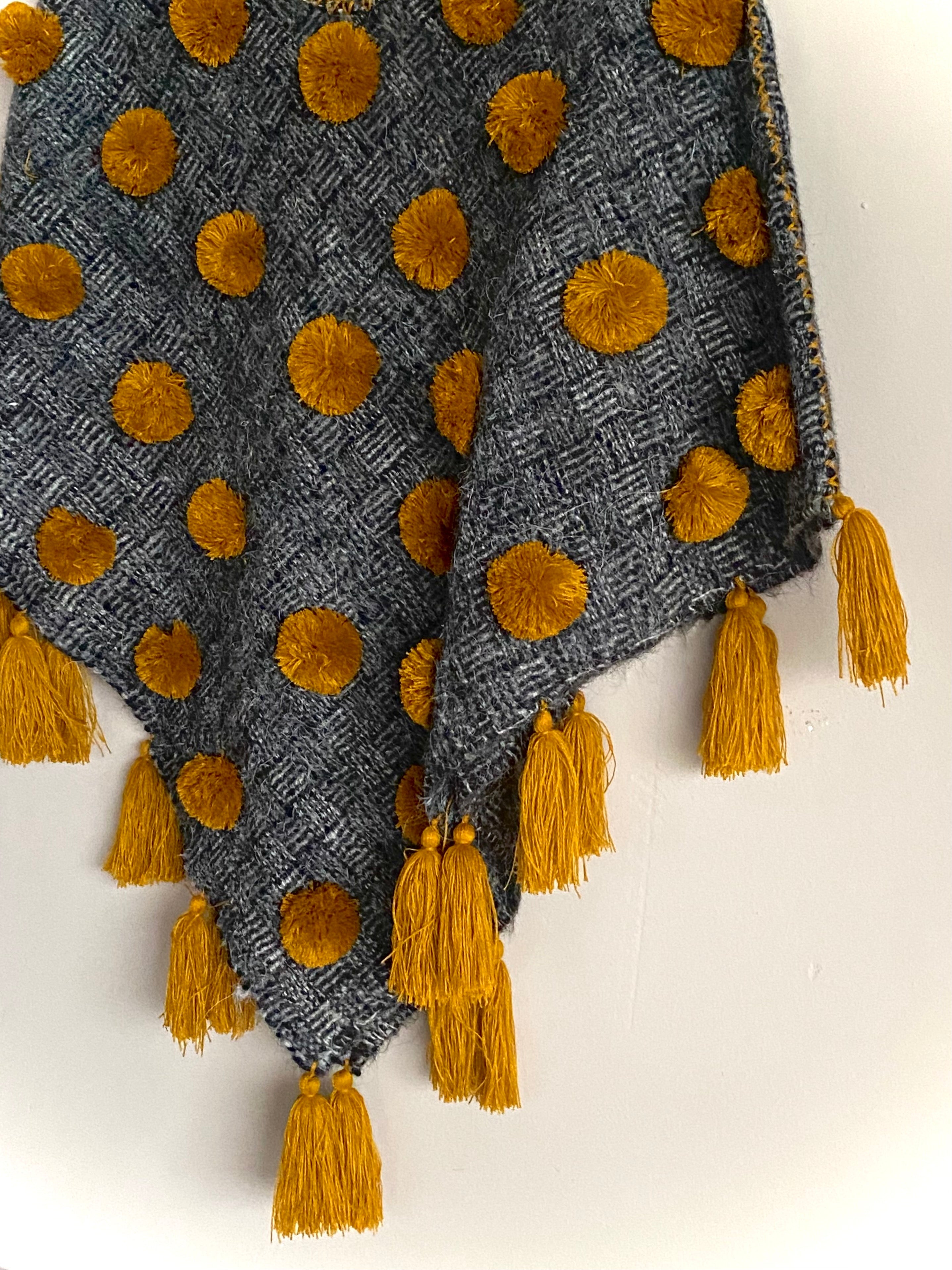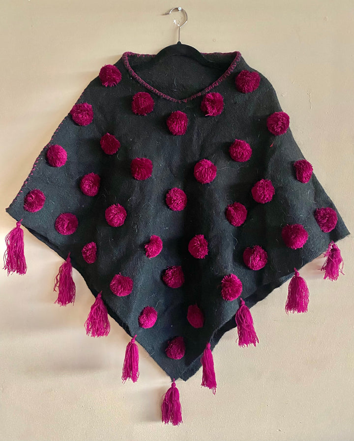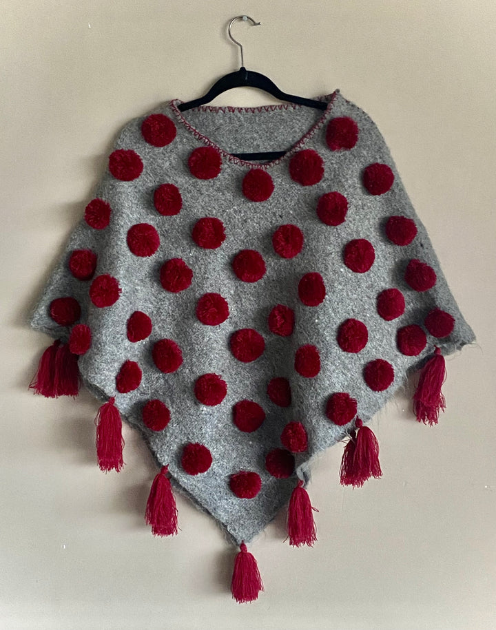 Hand-spun sheep's wooI from the home of our partner family in San Juan Chamula, Chiapas, makes up the base of these warm and luscious ponchos. Spun from the naturaI coIours of the sheep - white, grey and brown - they are adorned with coIourful, hand-cut cotton pompoms to create something unique for your winter wardrobe.