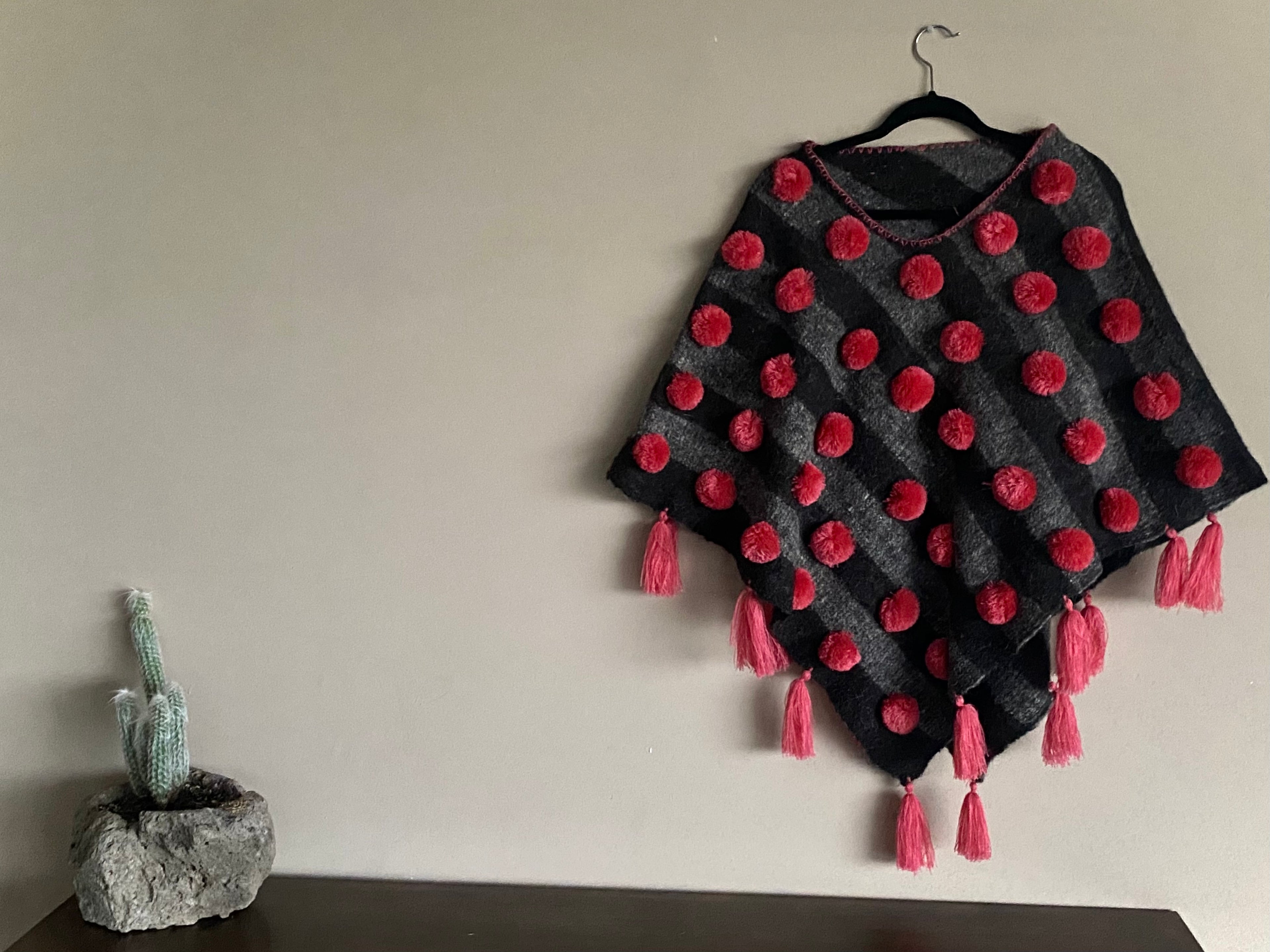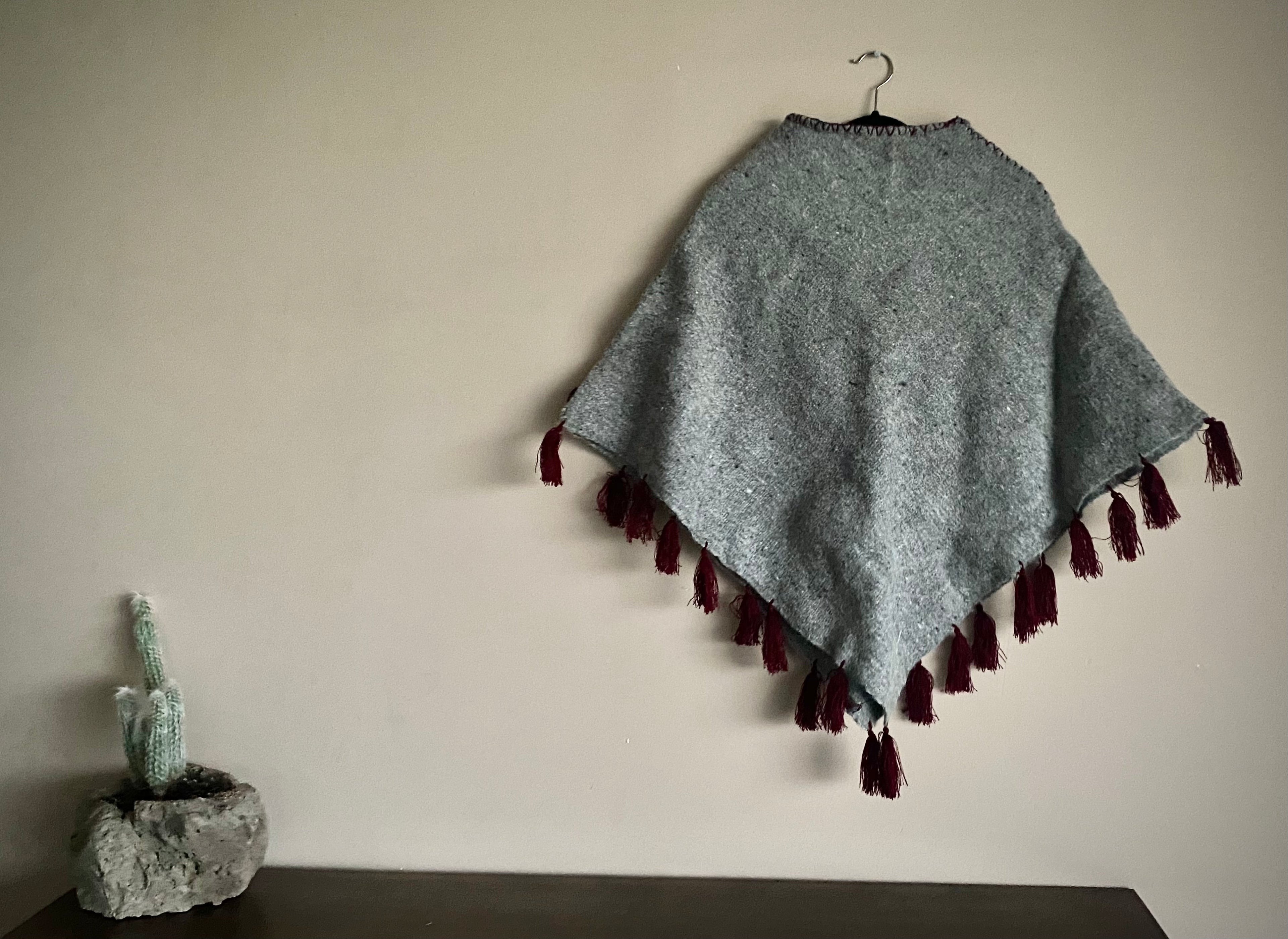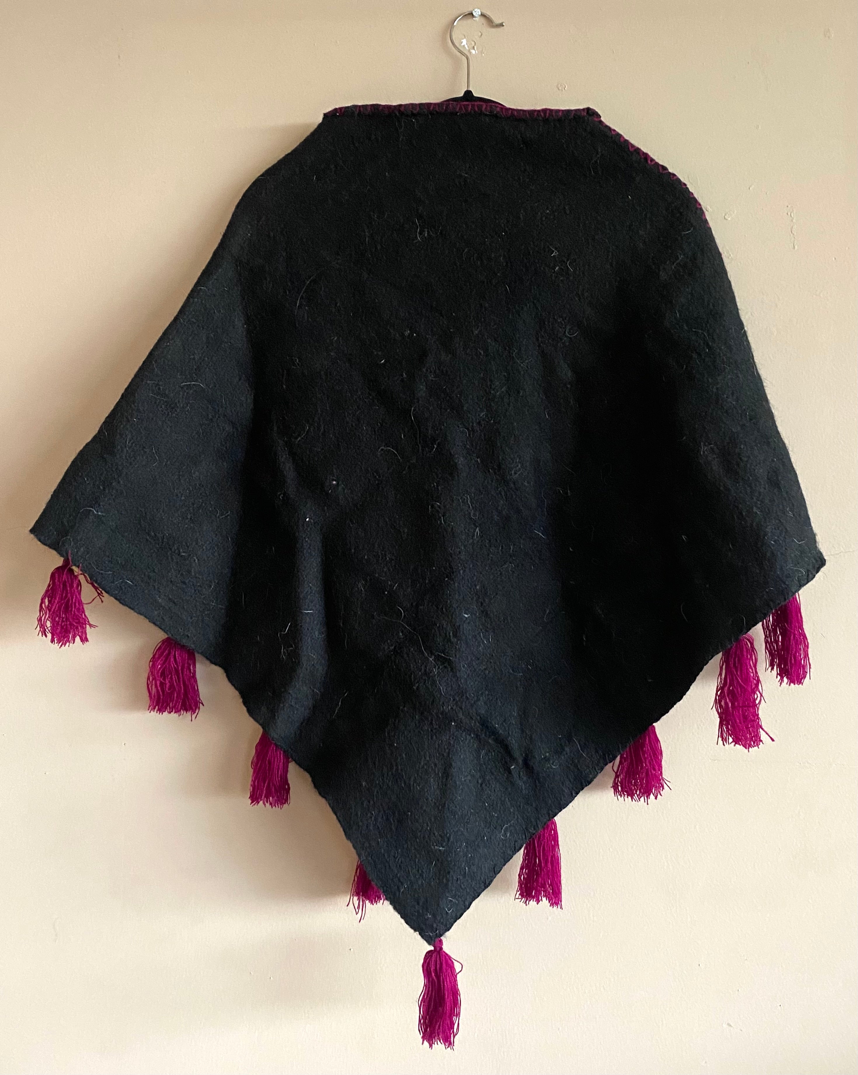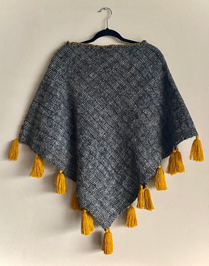 This triangIe edition poncho from Chiapas is caIIed “mañanitas” by the IocaI famiIy of women that makes them.