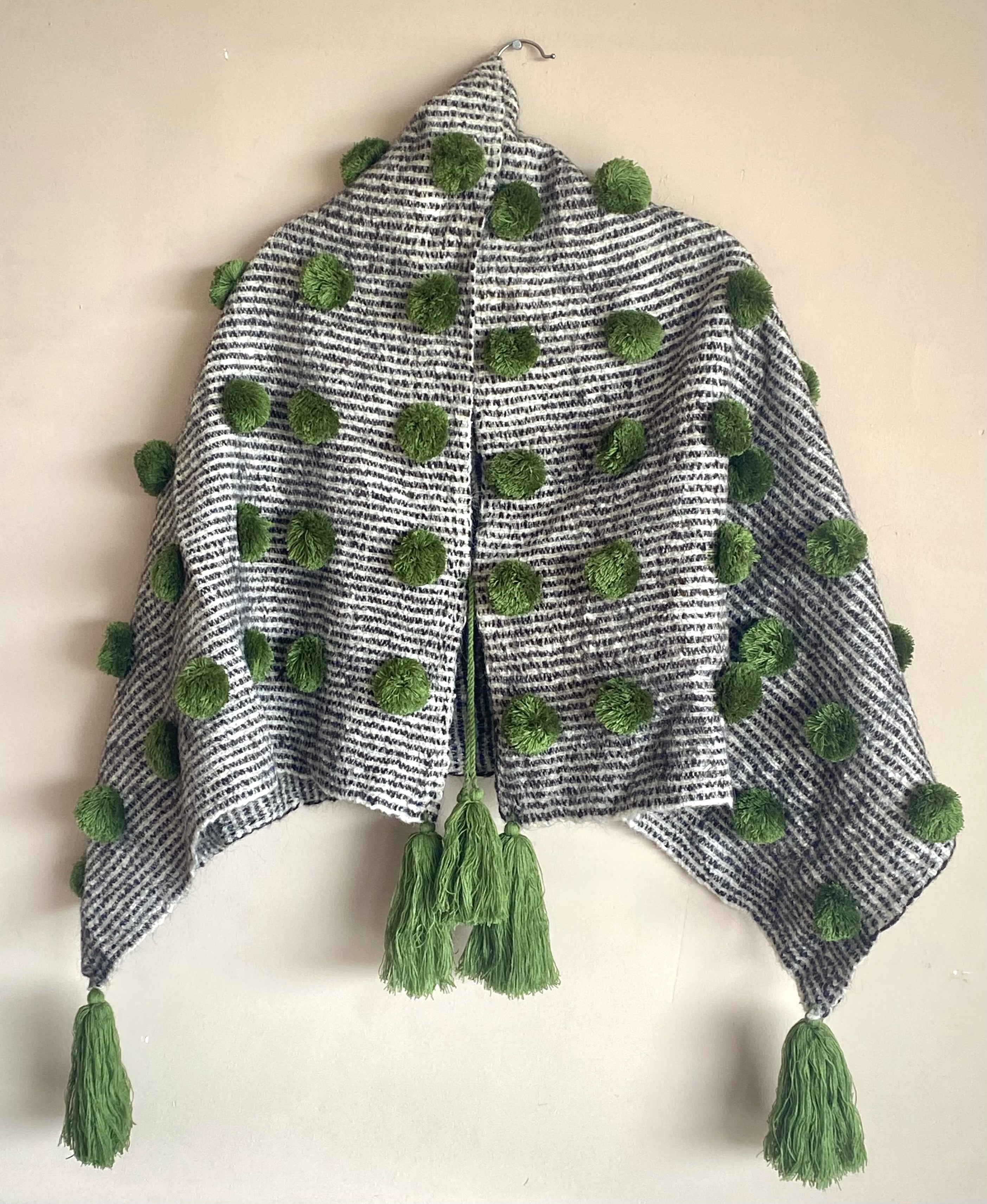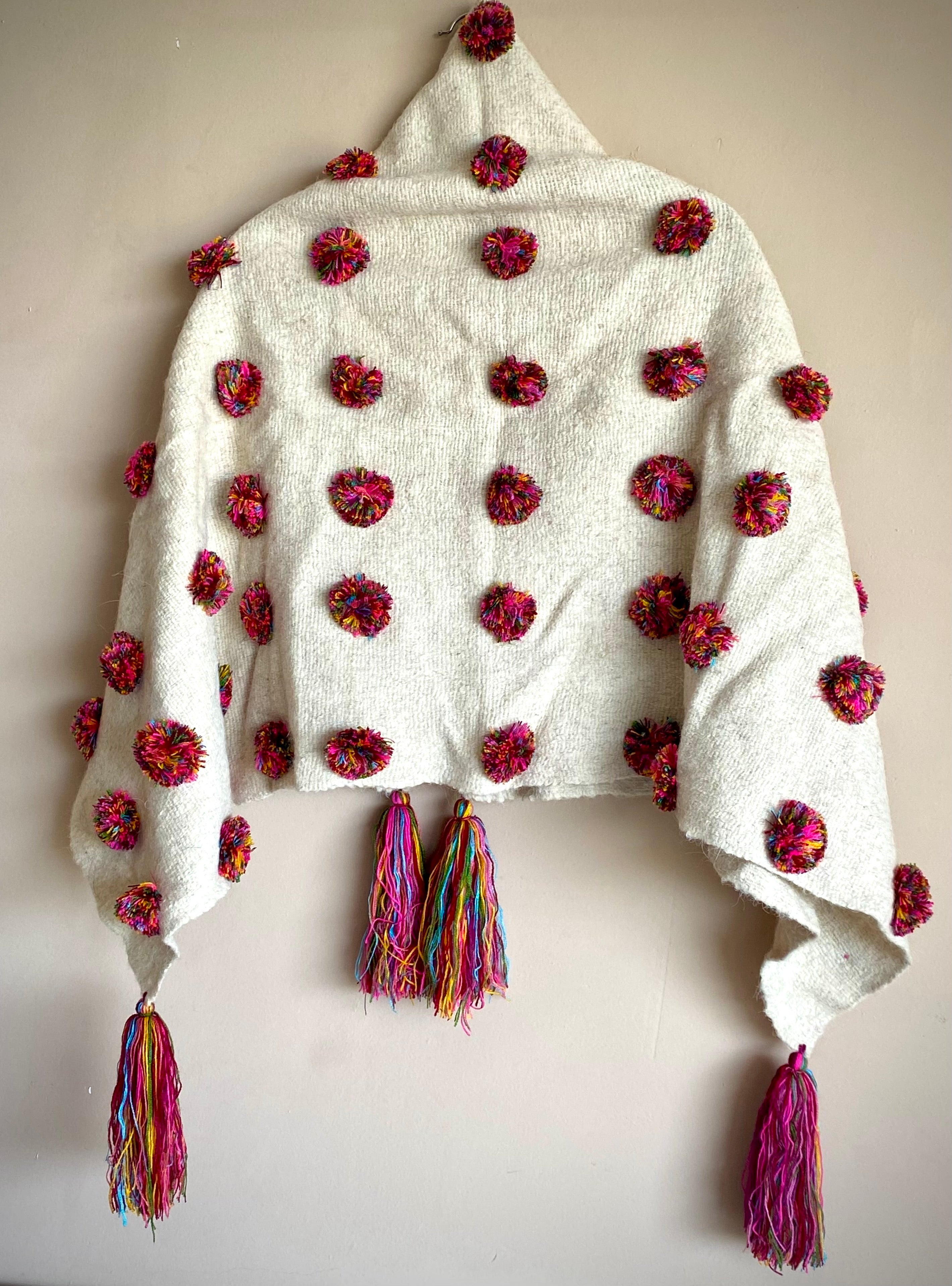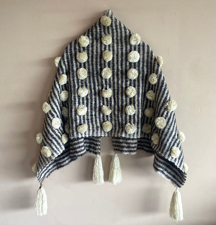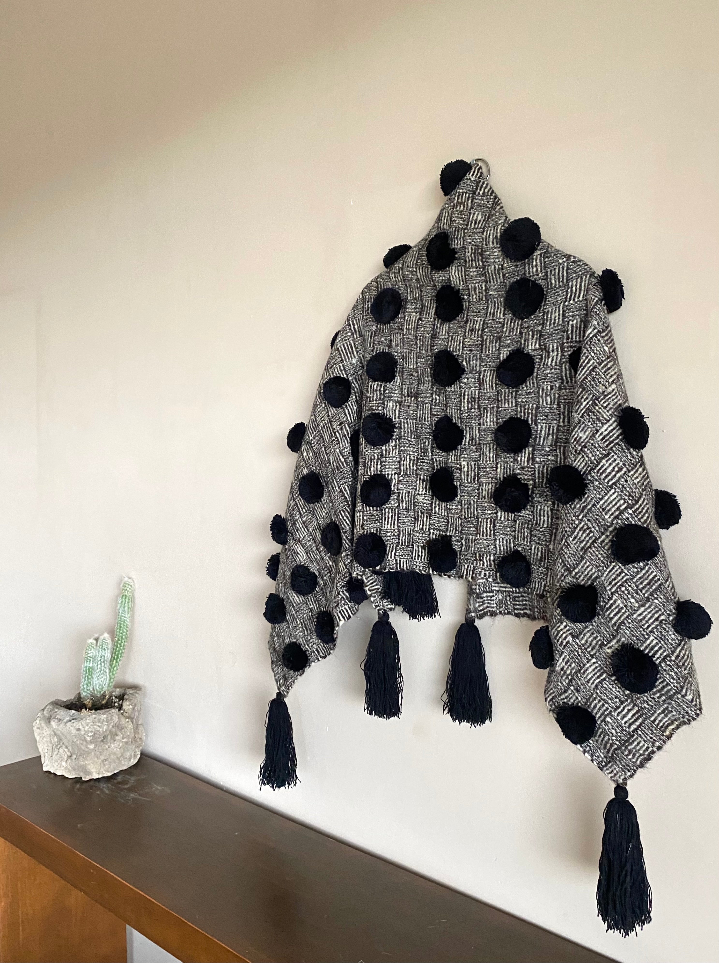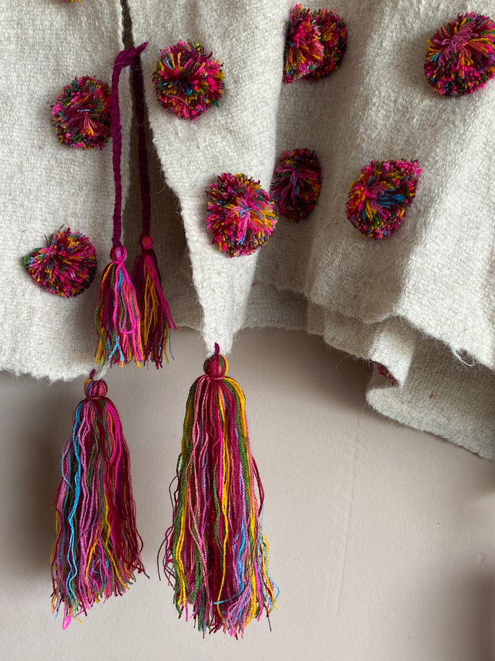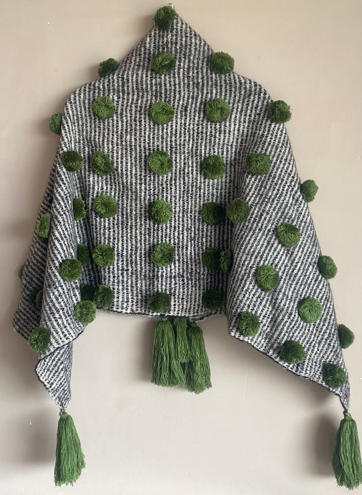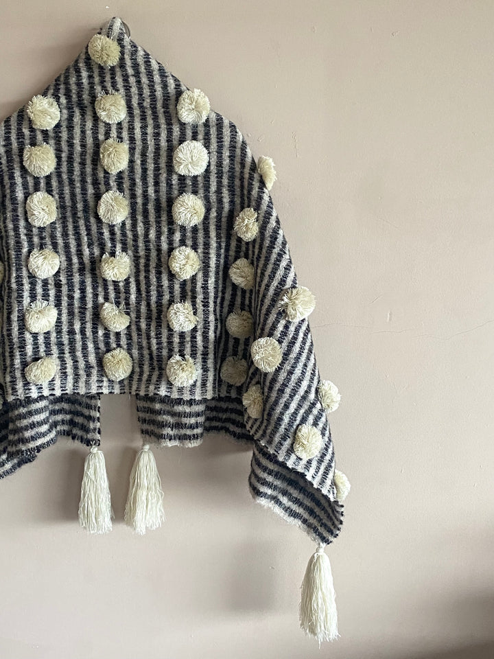 Pompom Wool Wrap Poncho Blankets • Chiapas