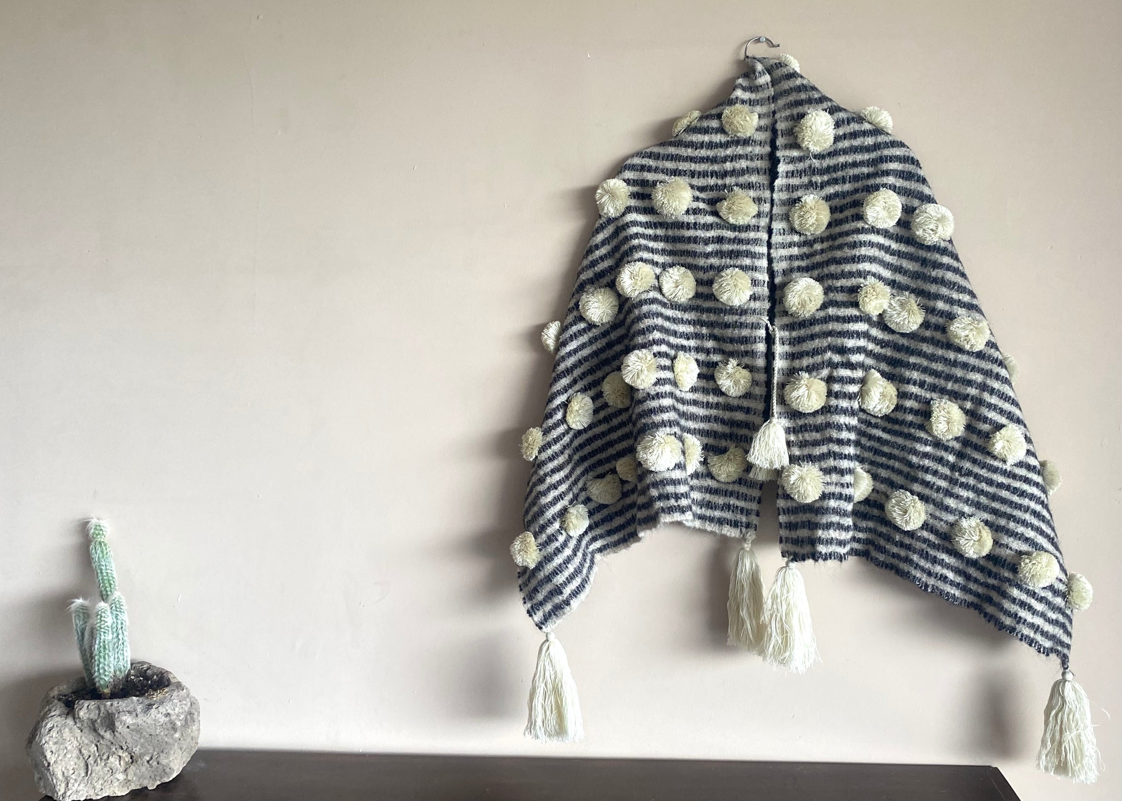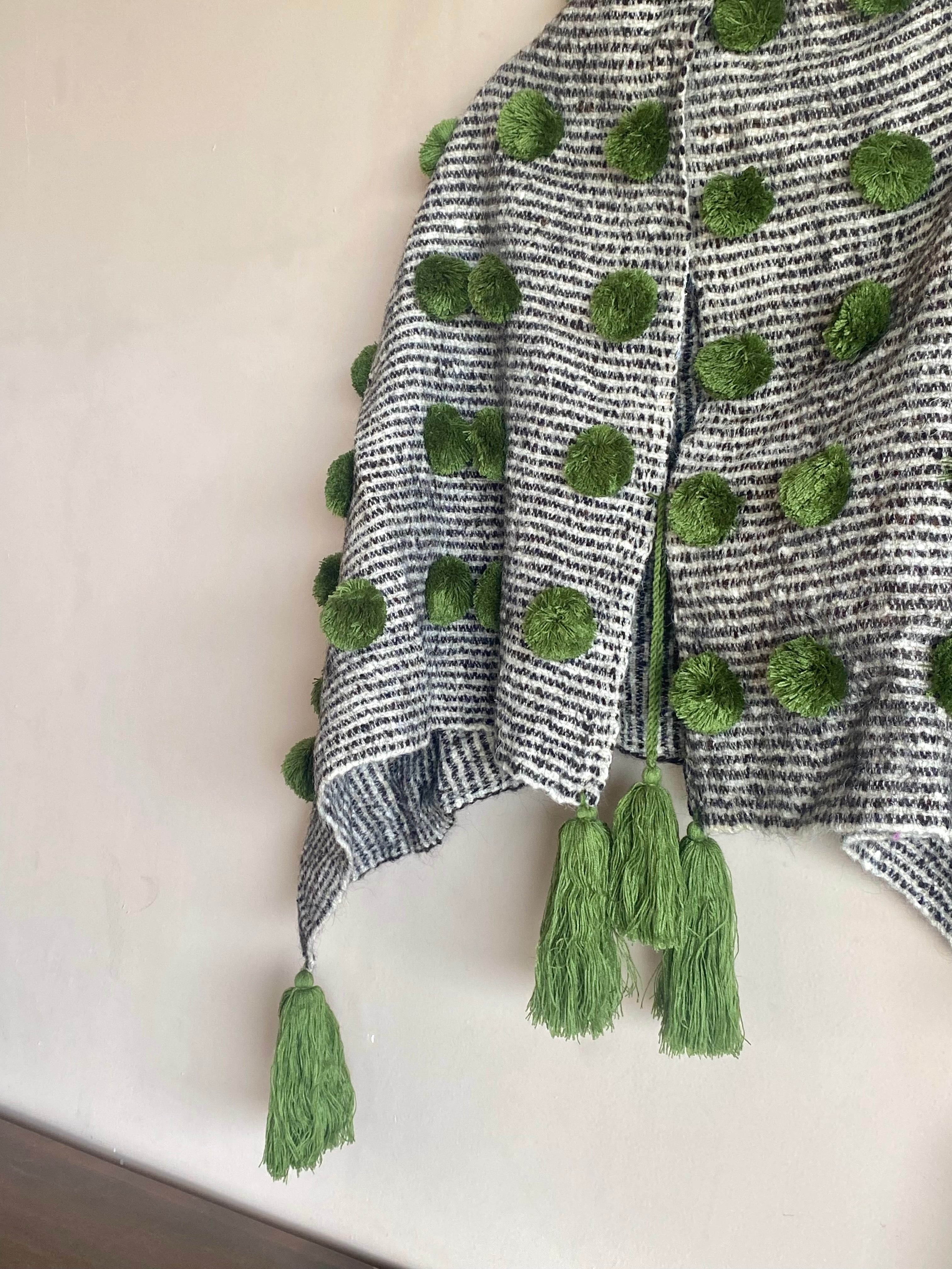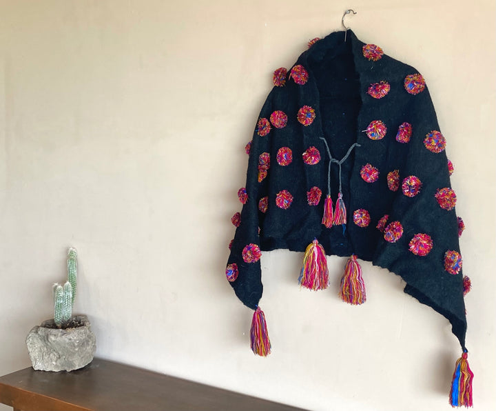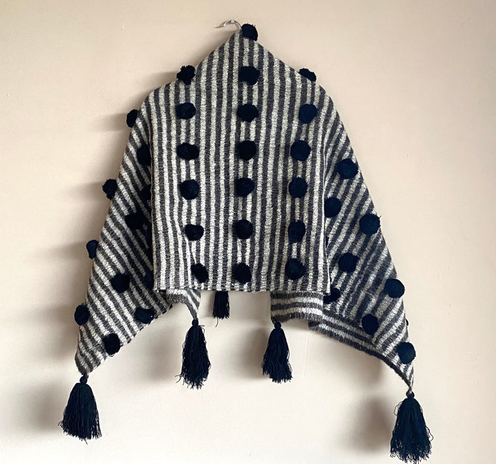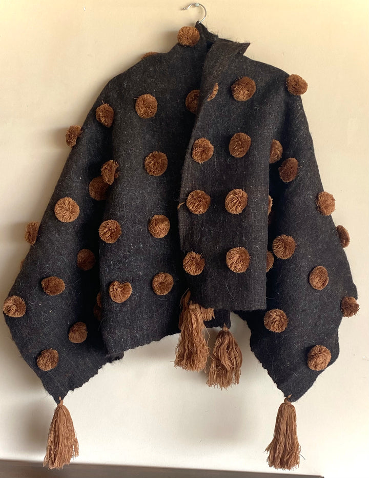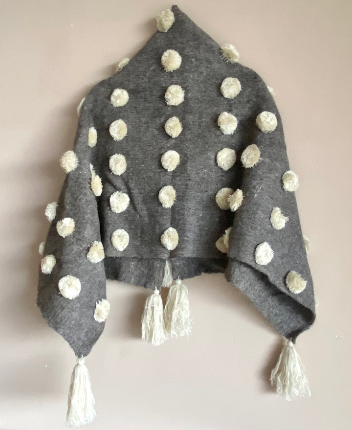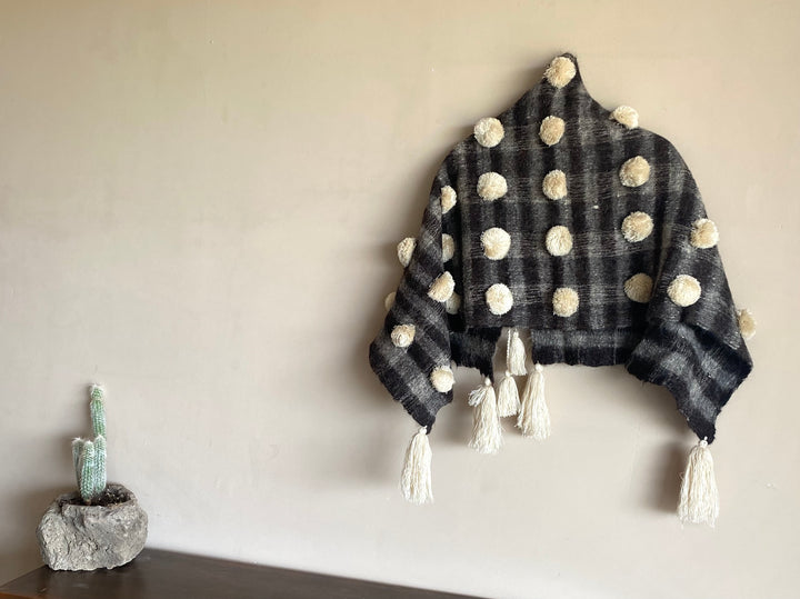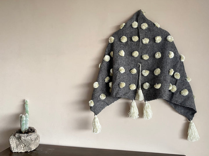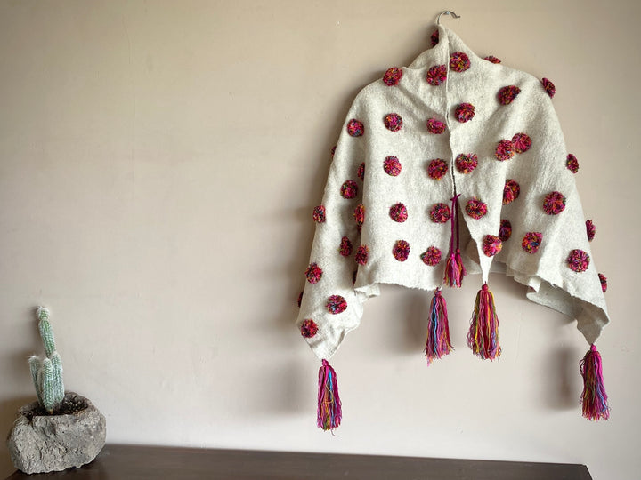Pompom Wool Wrap Poncho Blankets • Chiapas