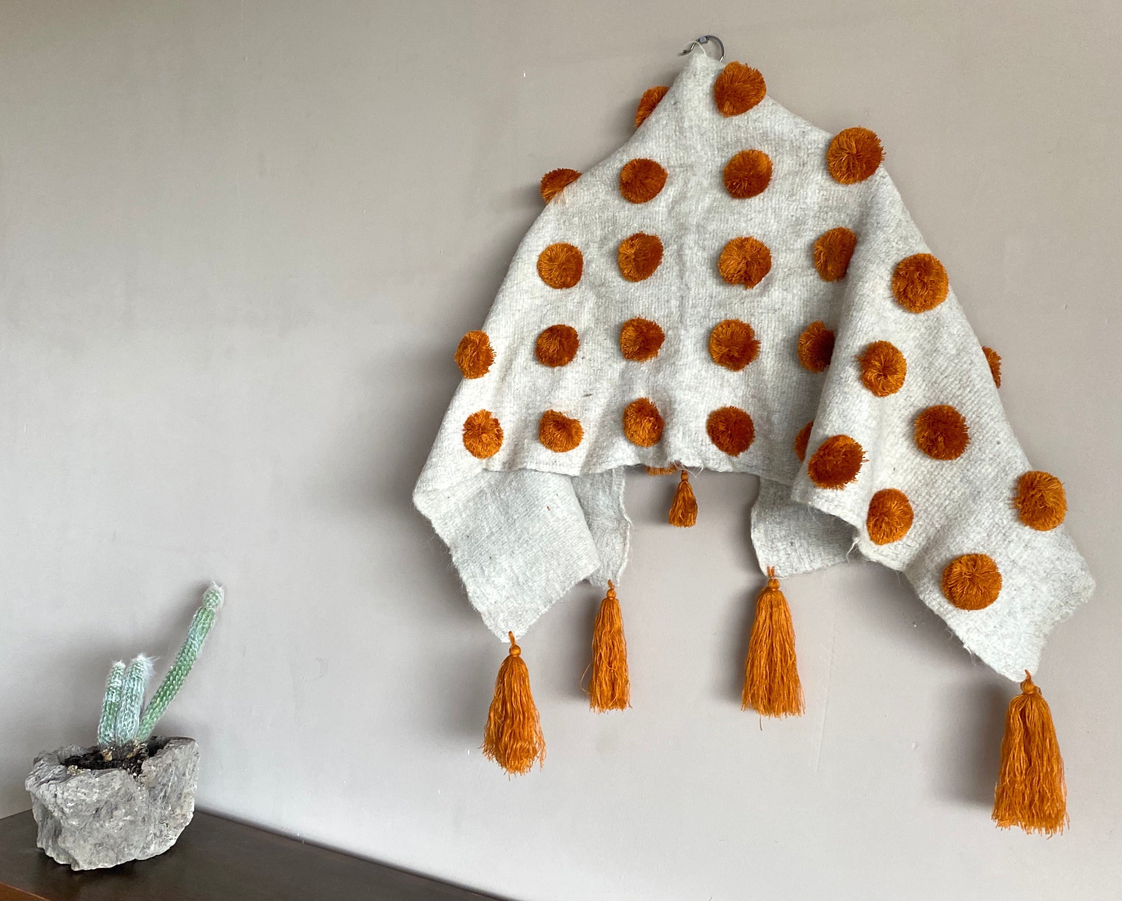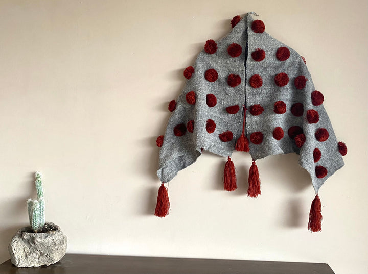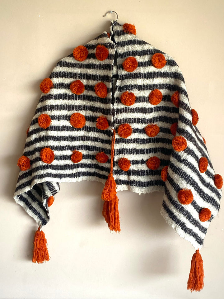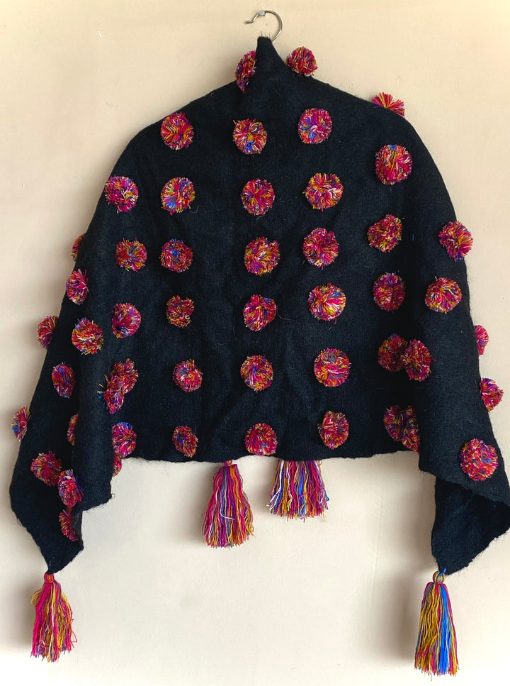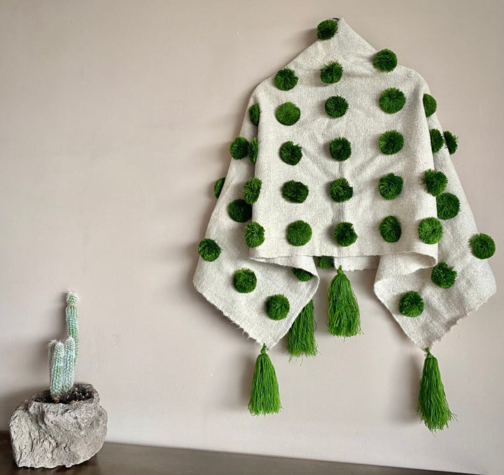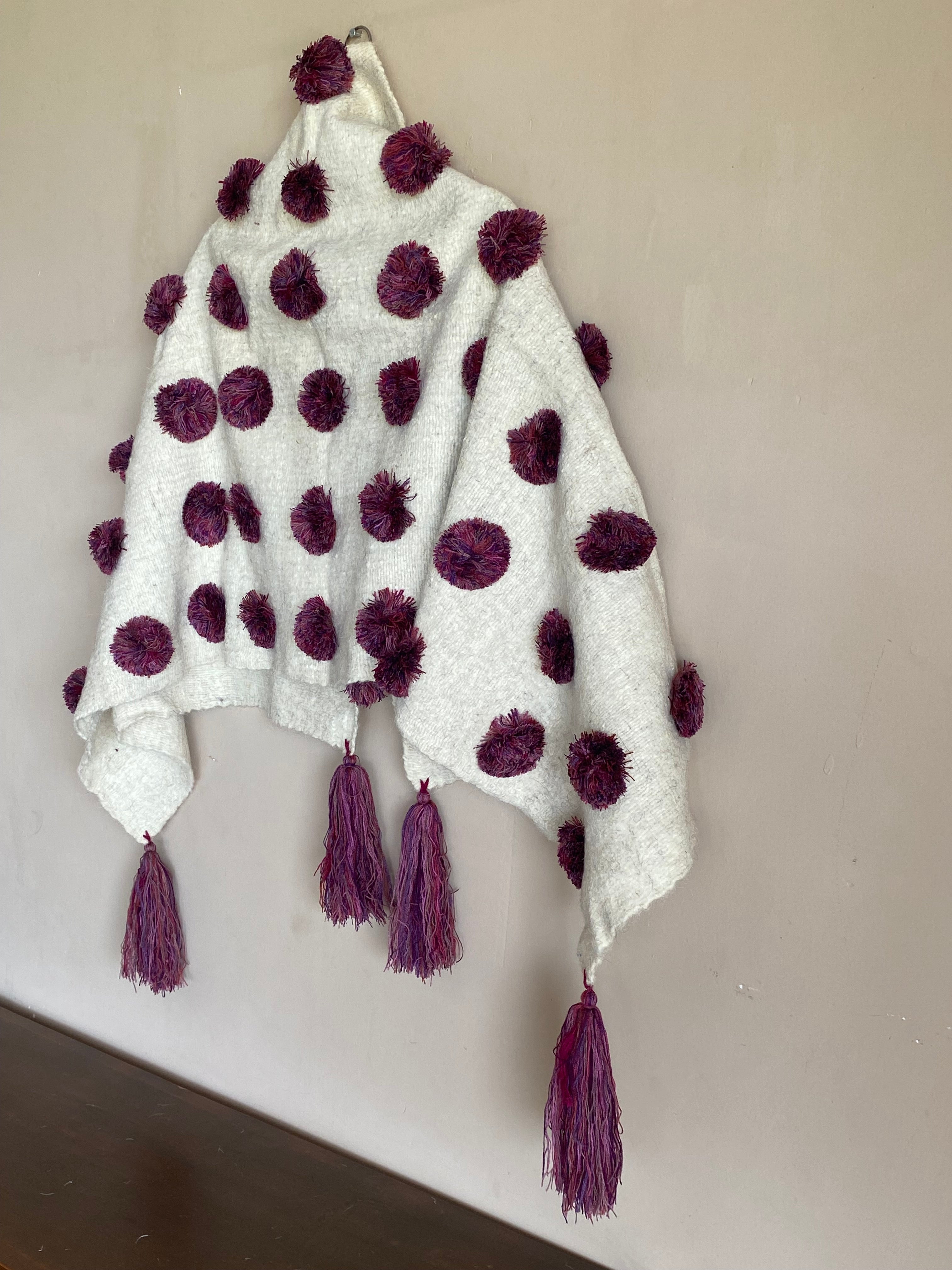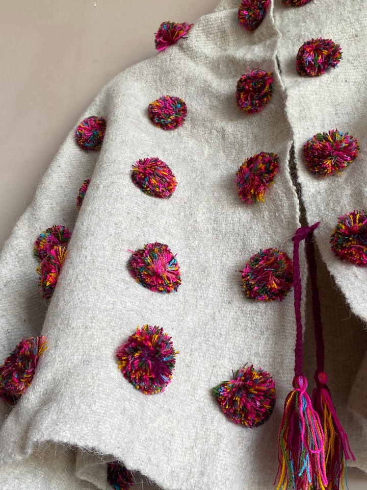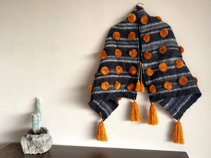 Pompom Wool Wrap Poncho Blankets • Chiapas