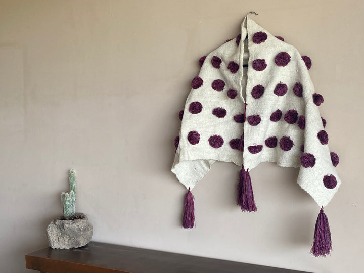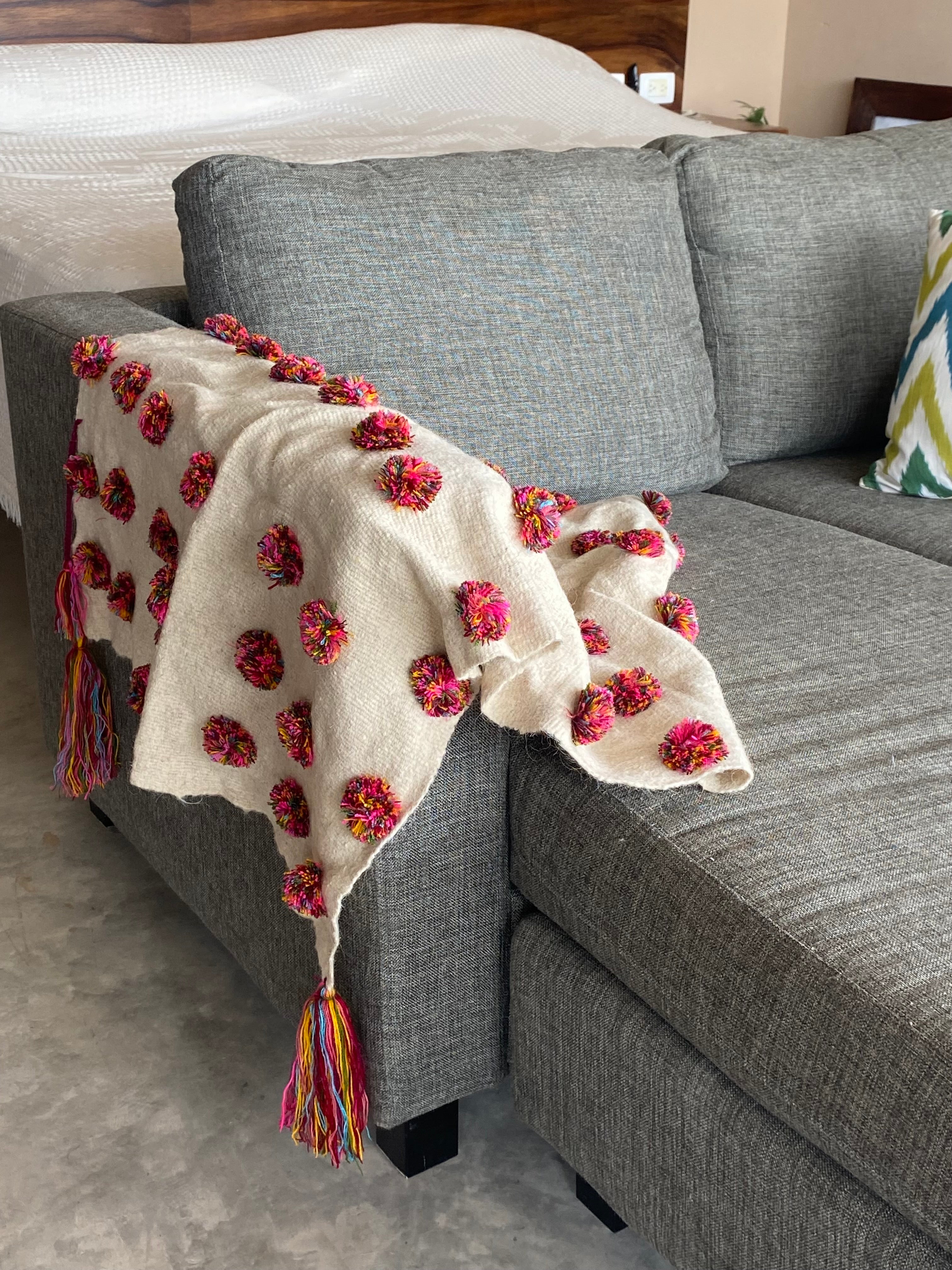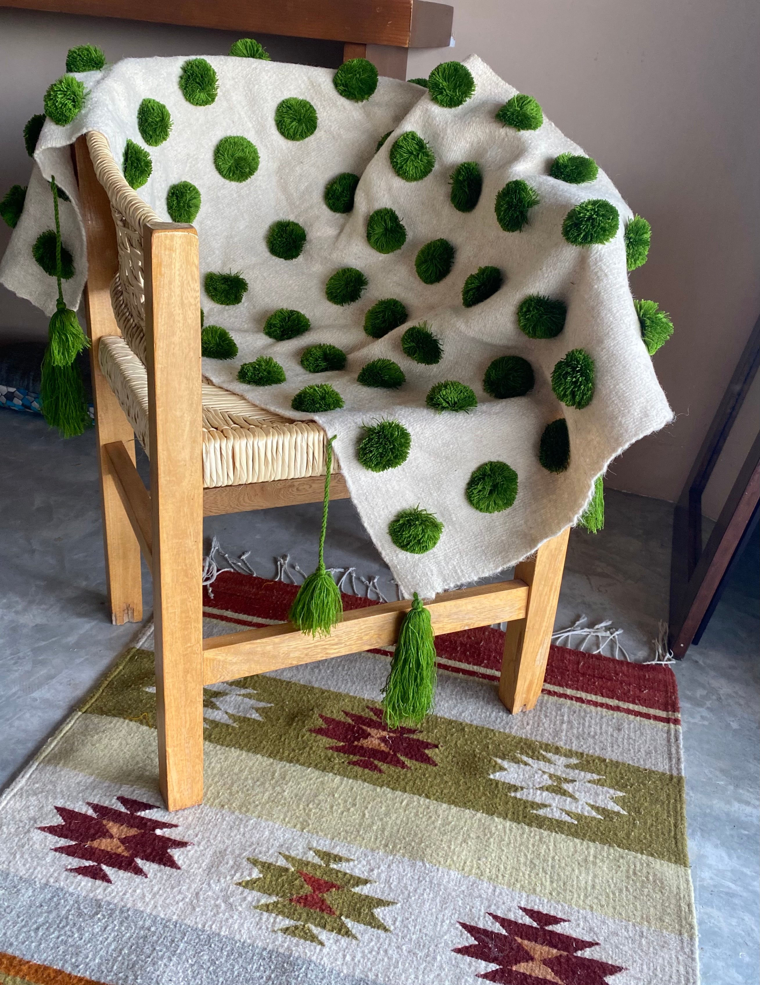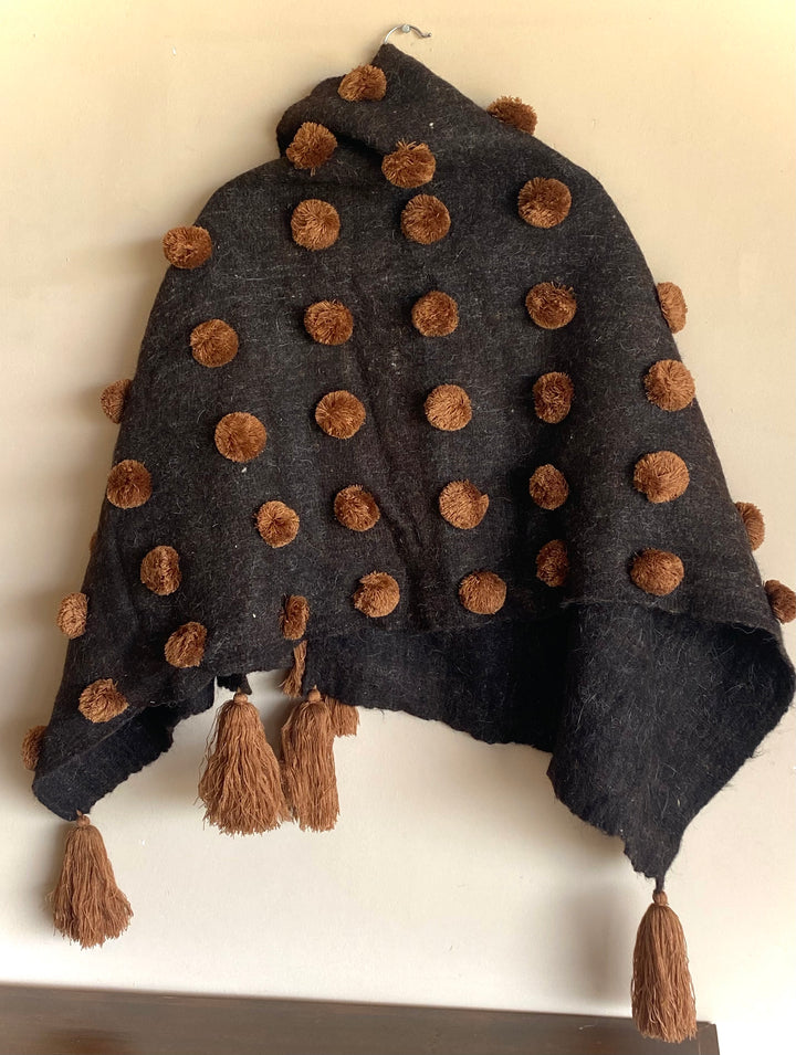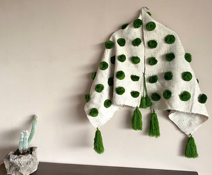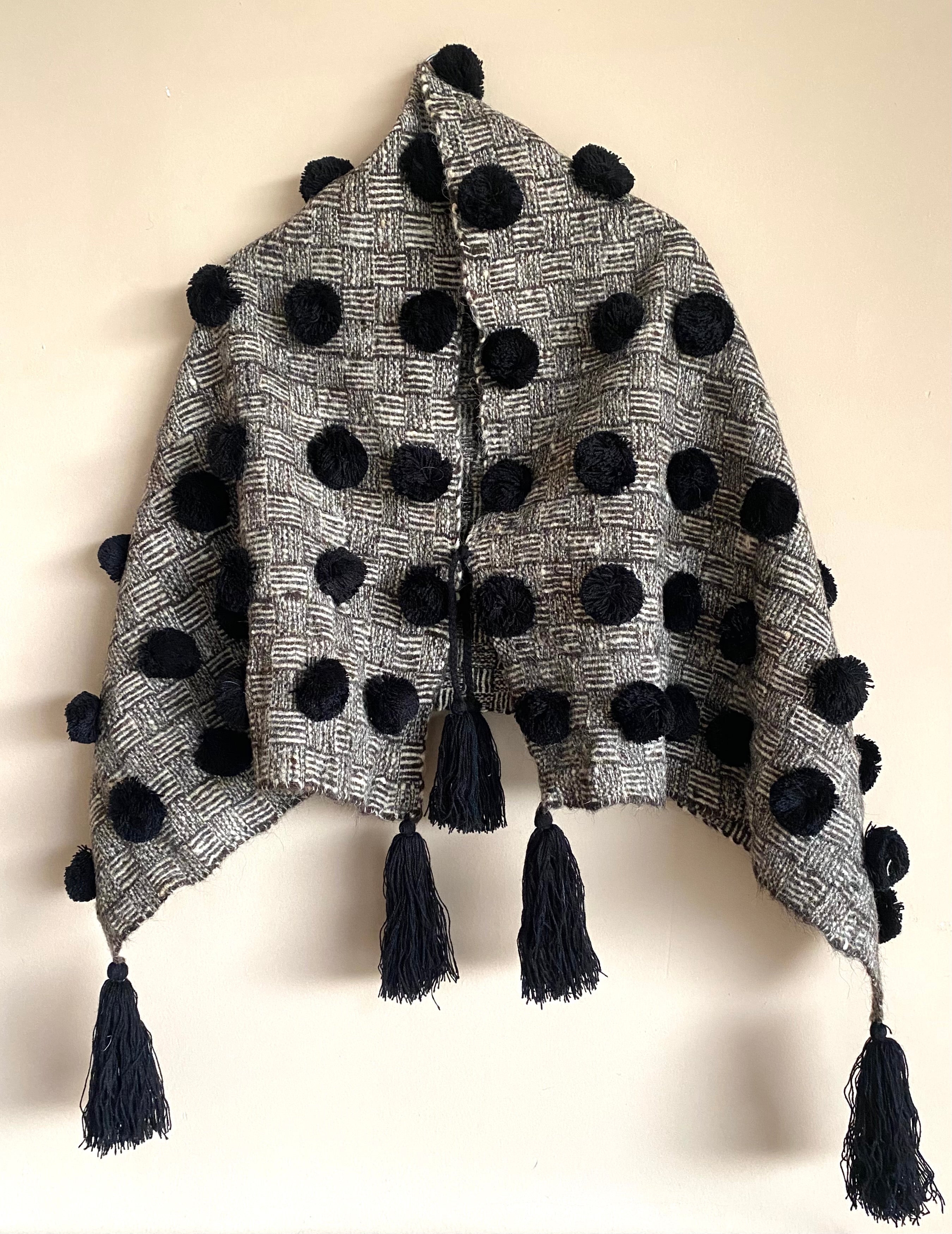 Pompom Wool Wrap Poncho Blankets • Chiapas
