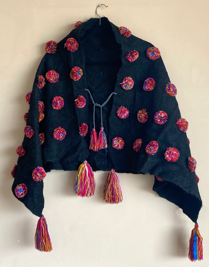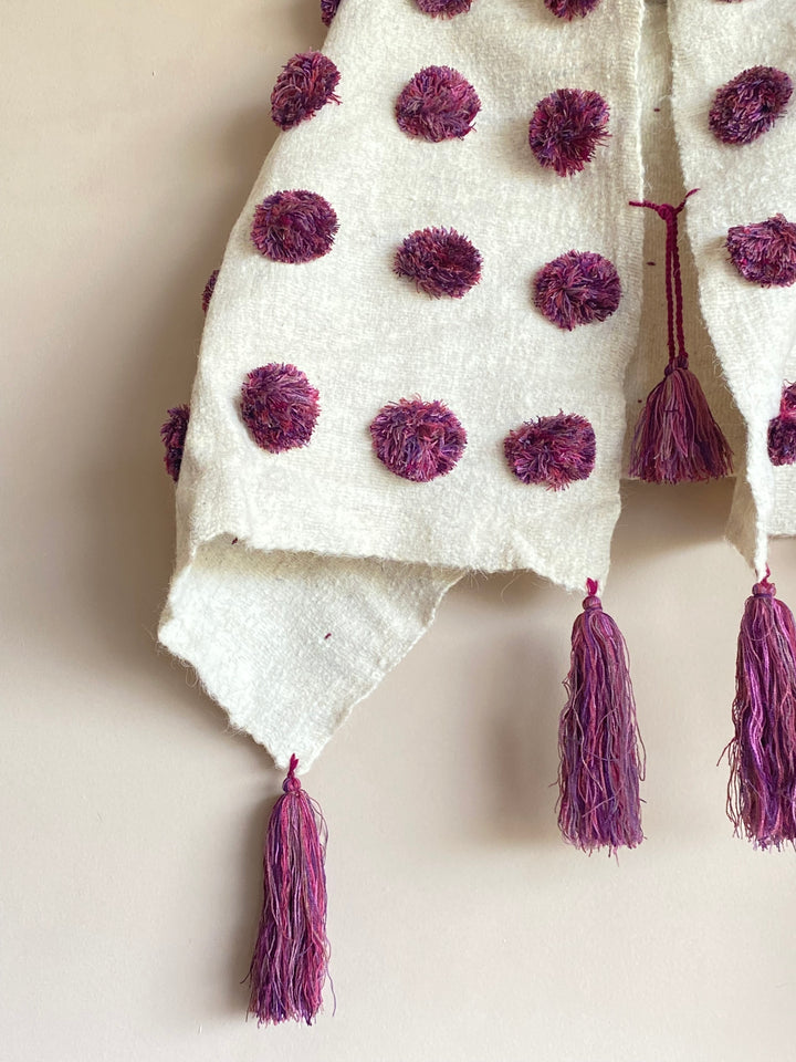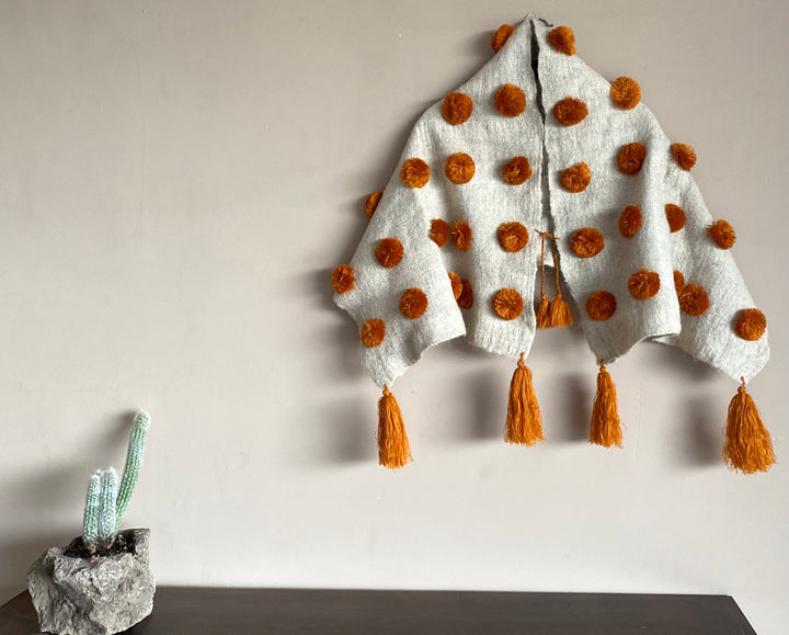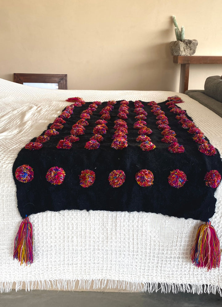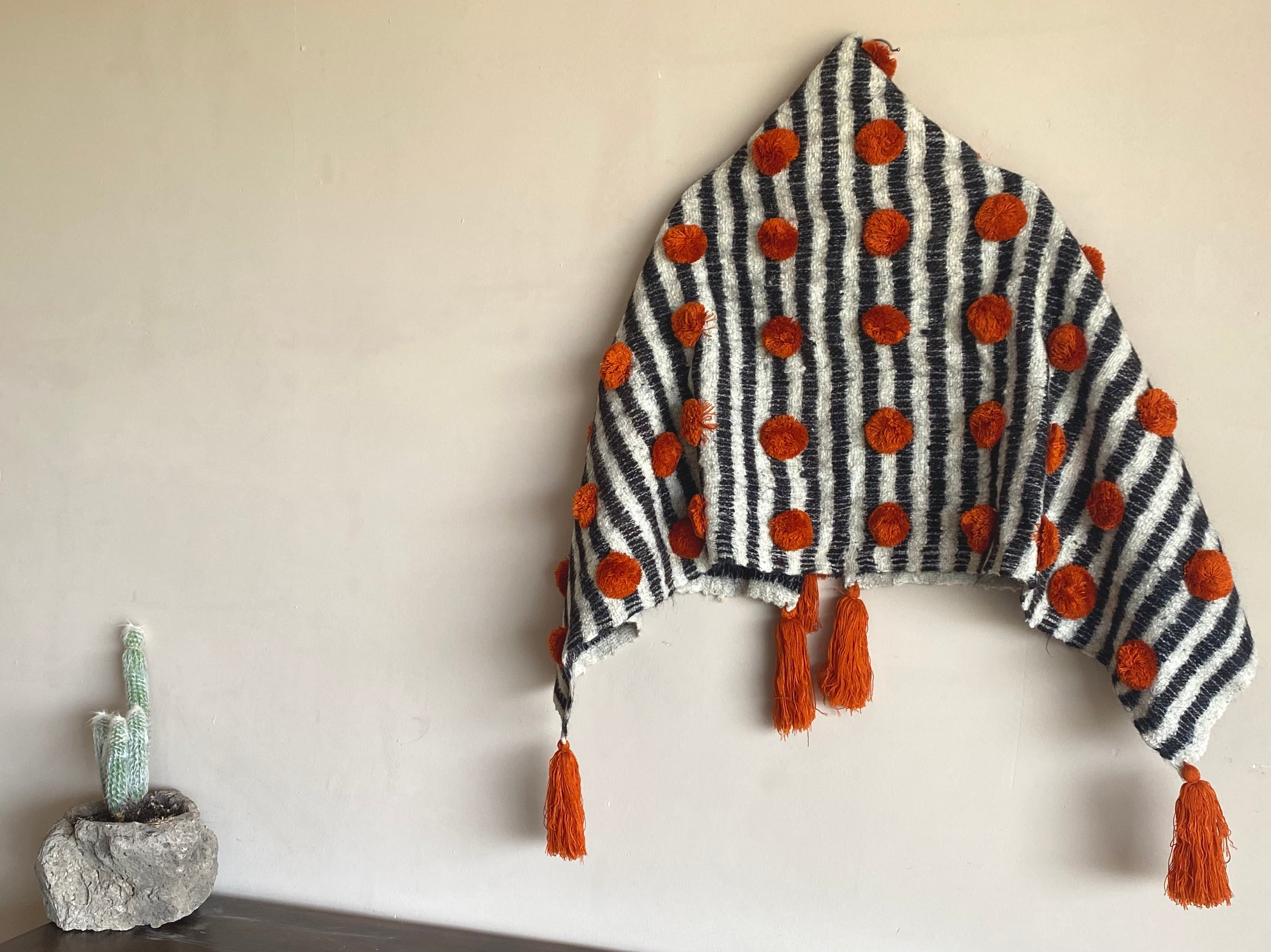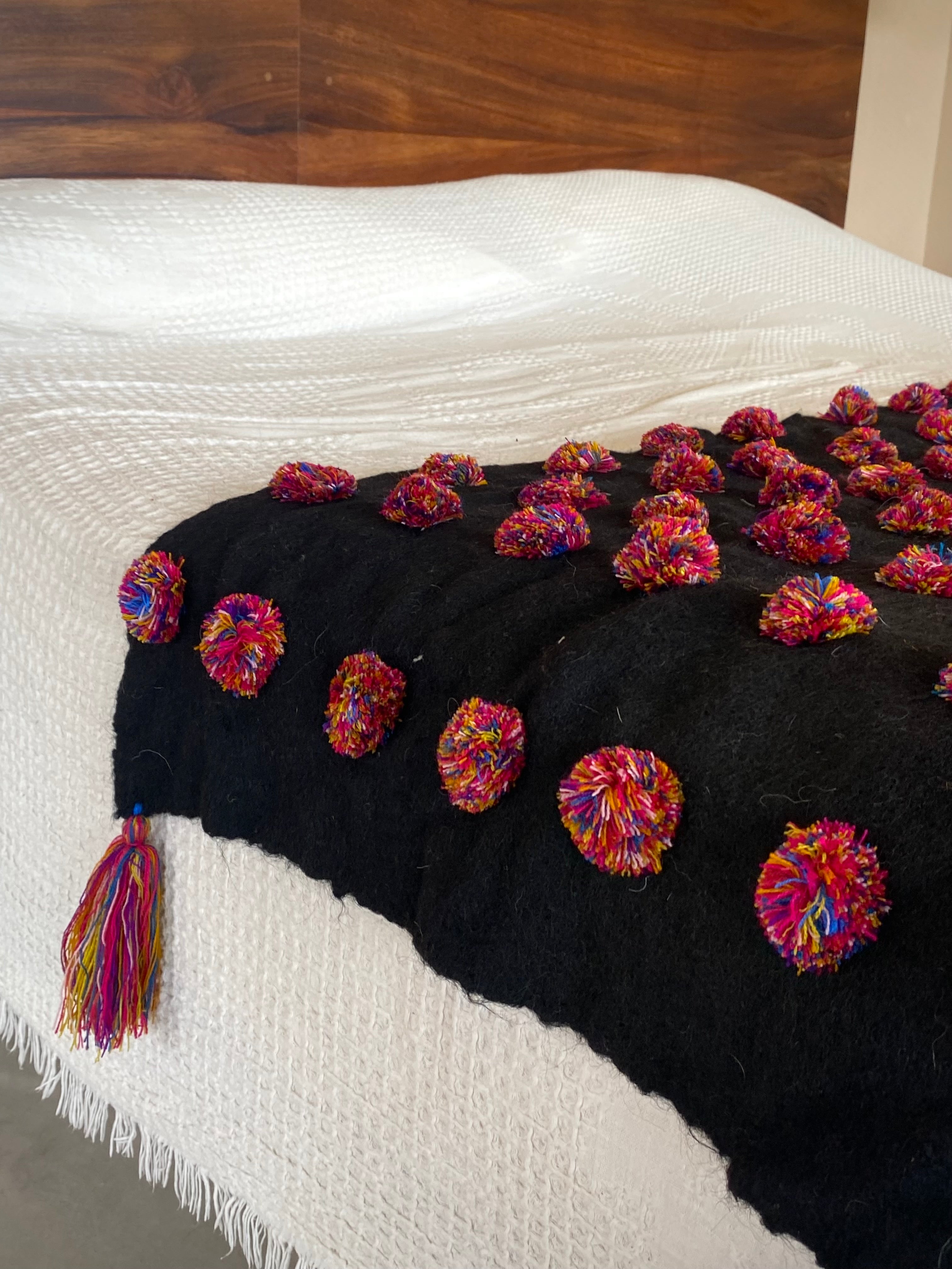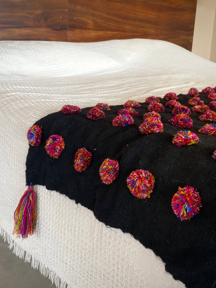 Pompom Wool Wrap Poncho Blankets • Chiapas