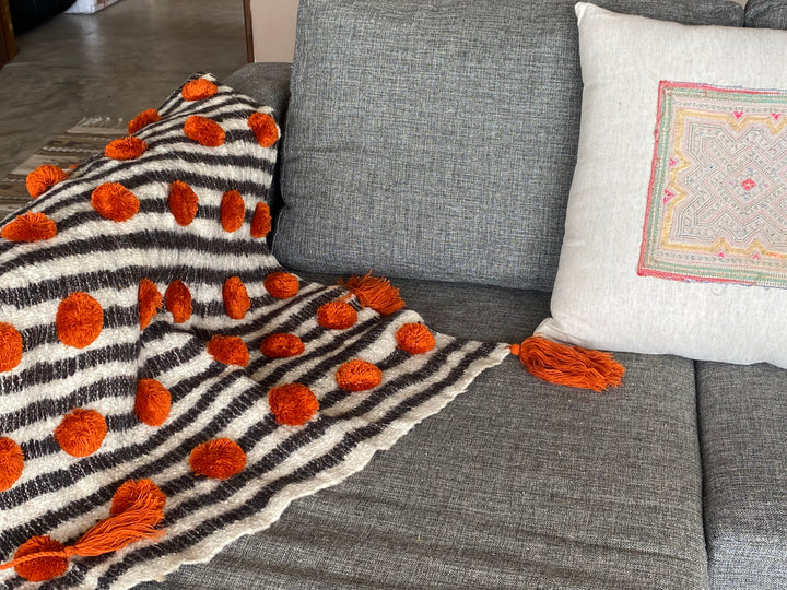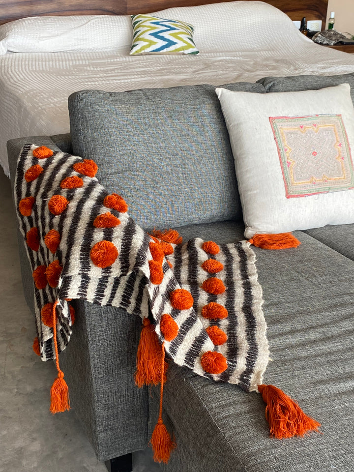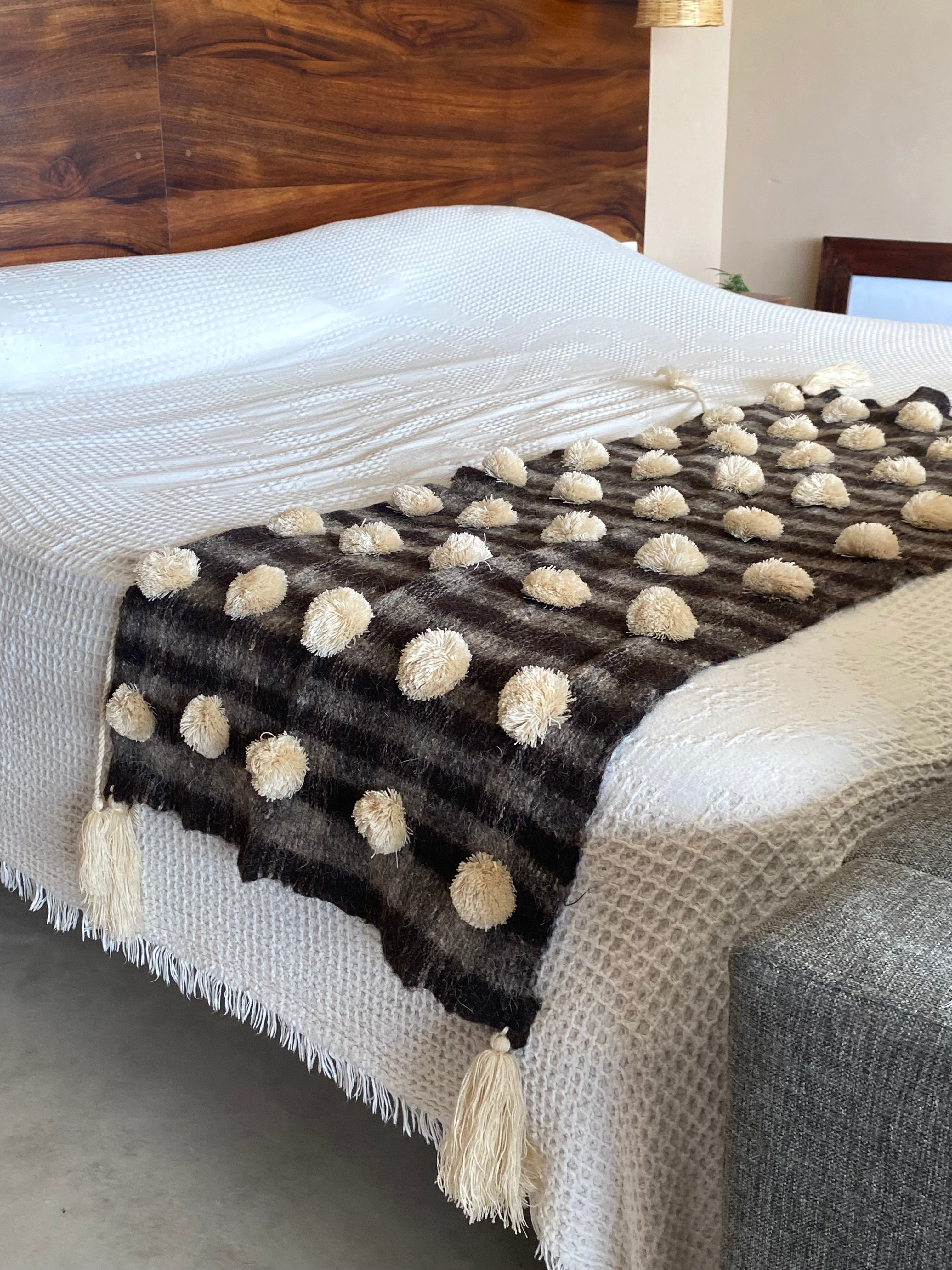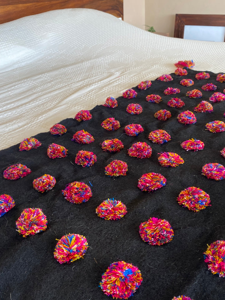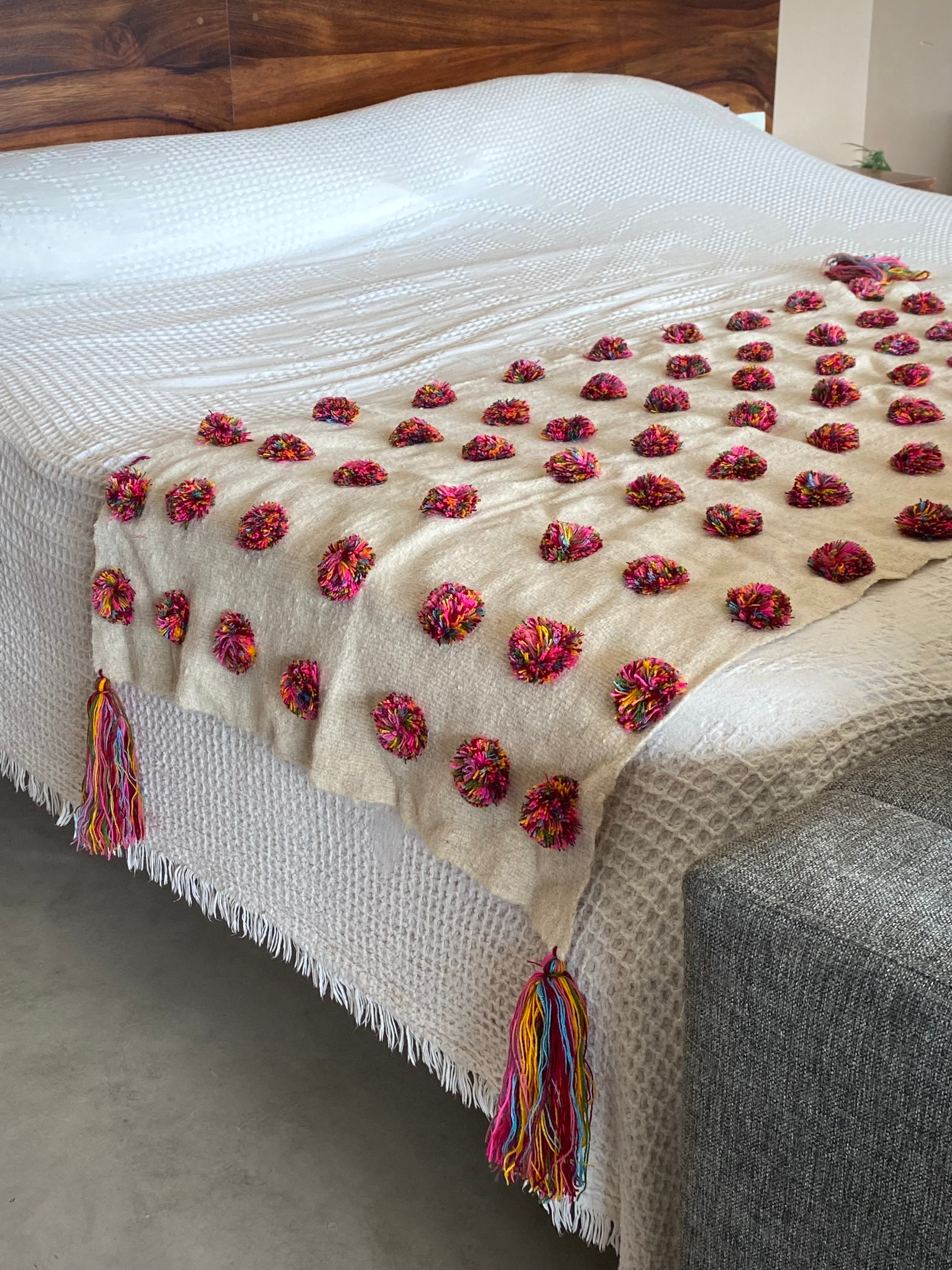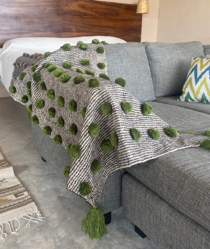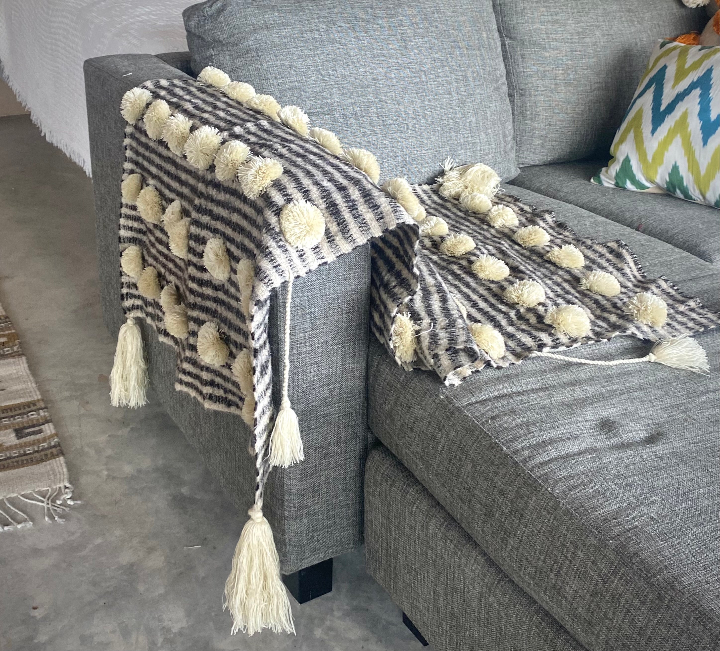 Pompom Wool Wrap Poncho Blankets • Chiapas