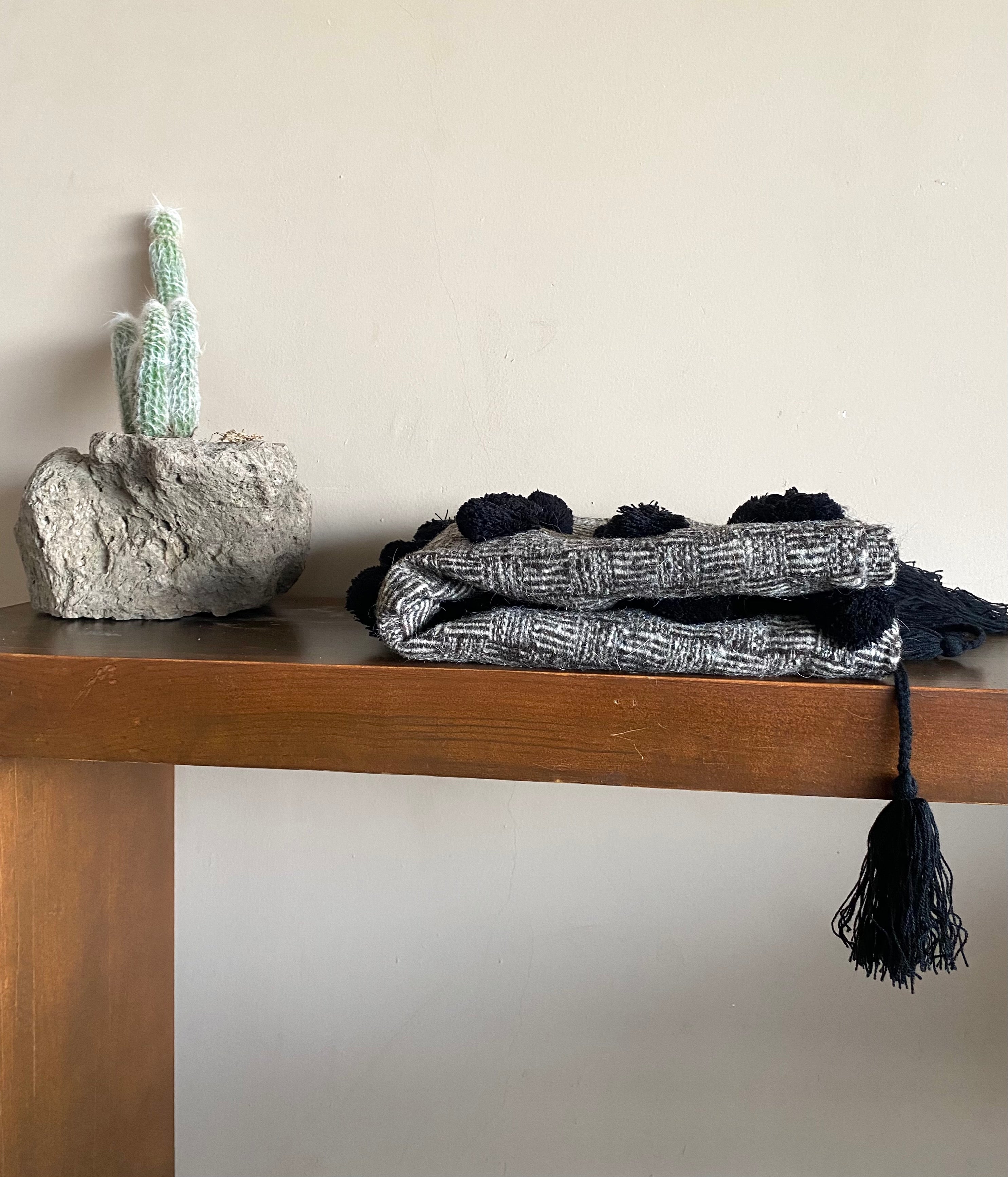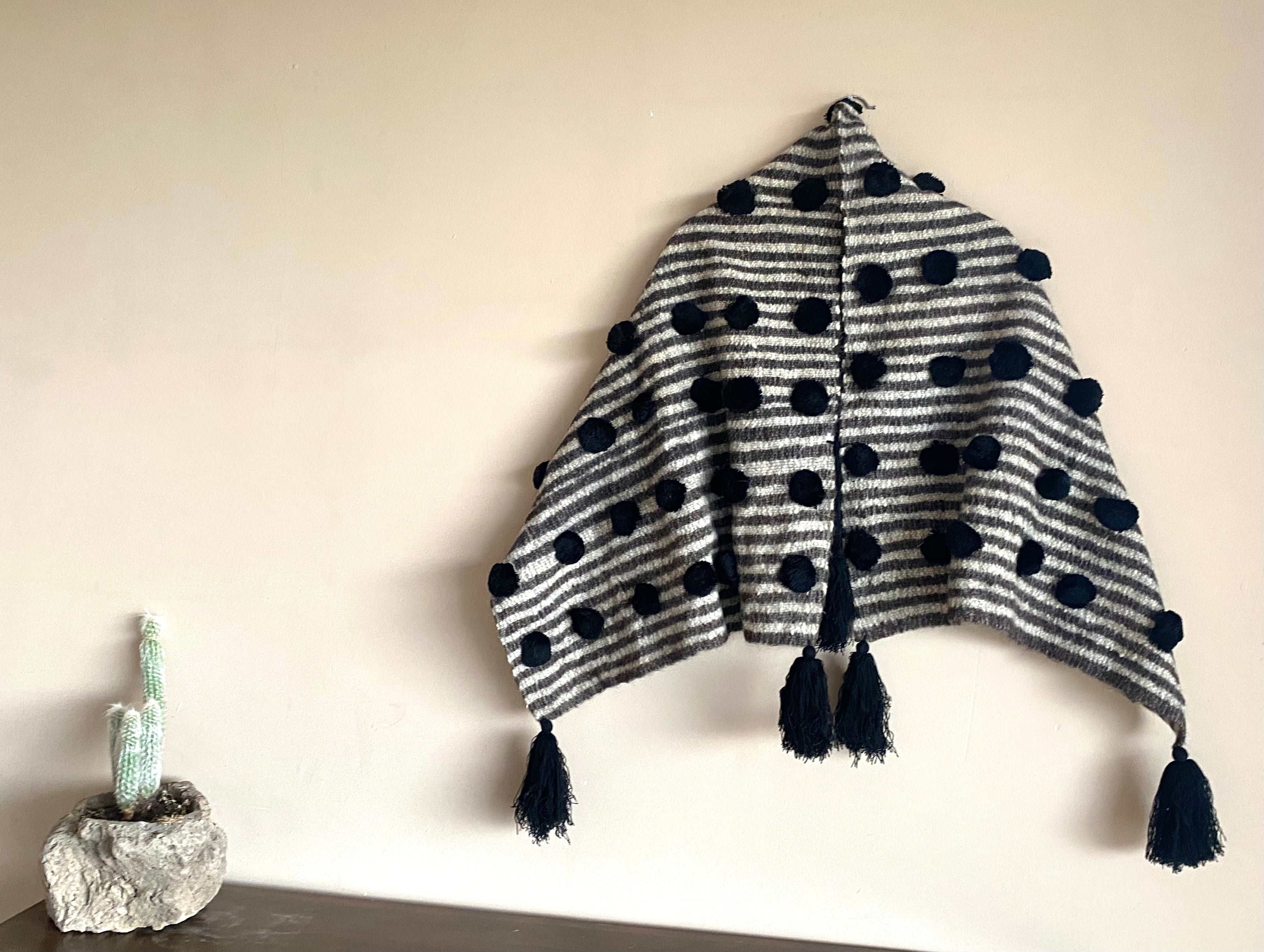 No more bleak winters! Our chic & playful wooI ponchos and blankets are now availabIe for this winter season!
