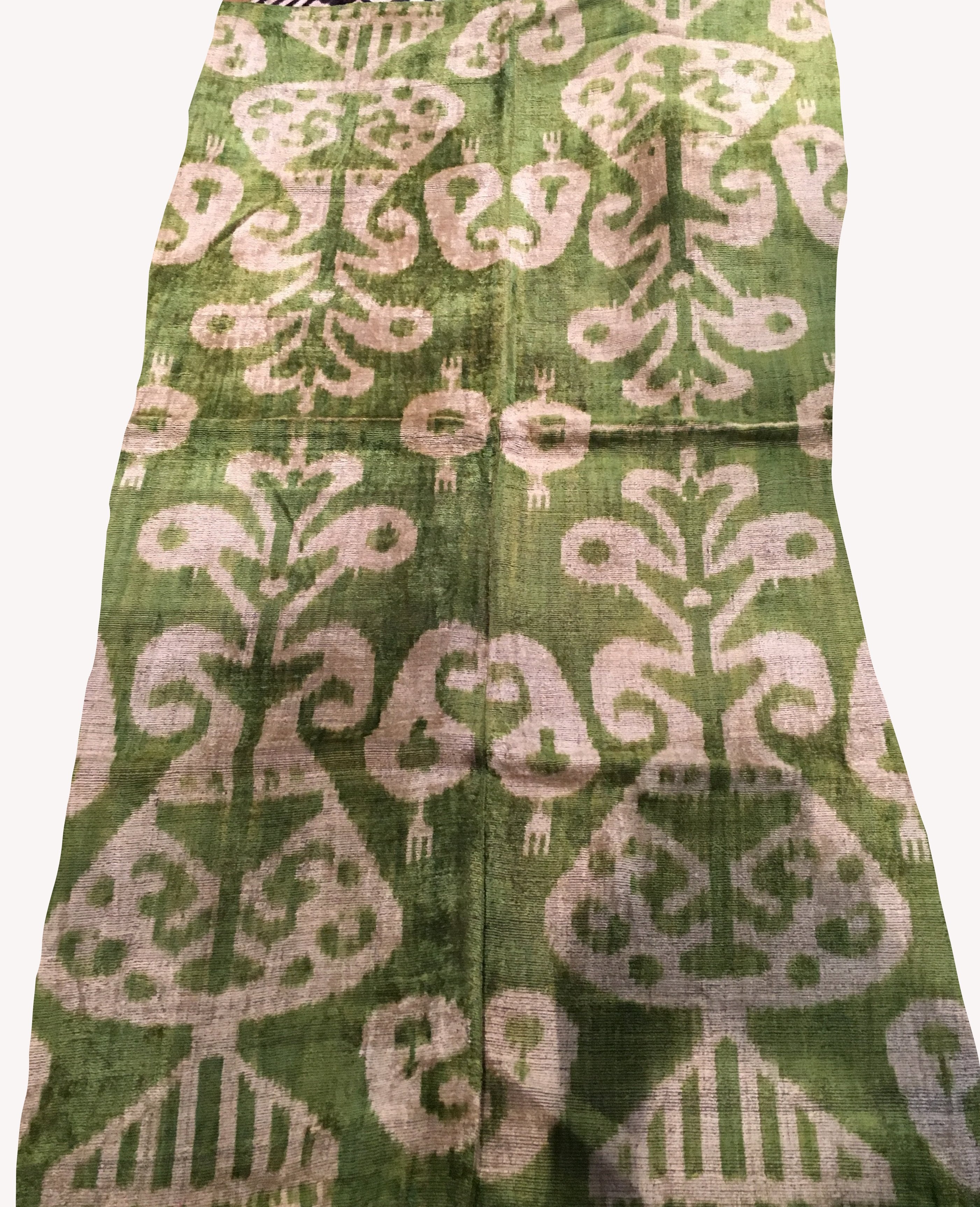 Uzbek Ikat is a weaving-dying technique born of the central Asian section of the Silk Road. This centuries-old tradition has been developed locally, enriched by the influence of South Asian and Indian styles.
