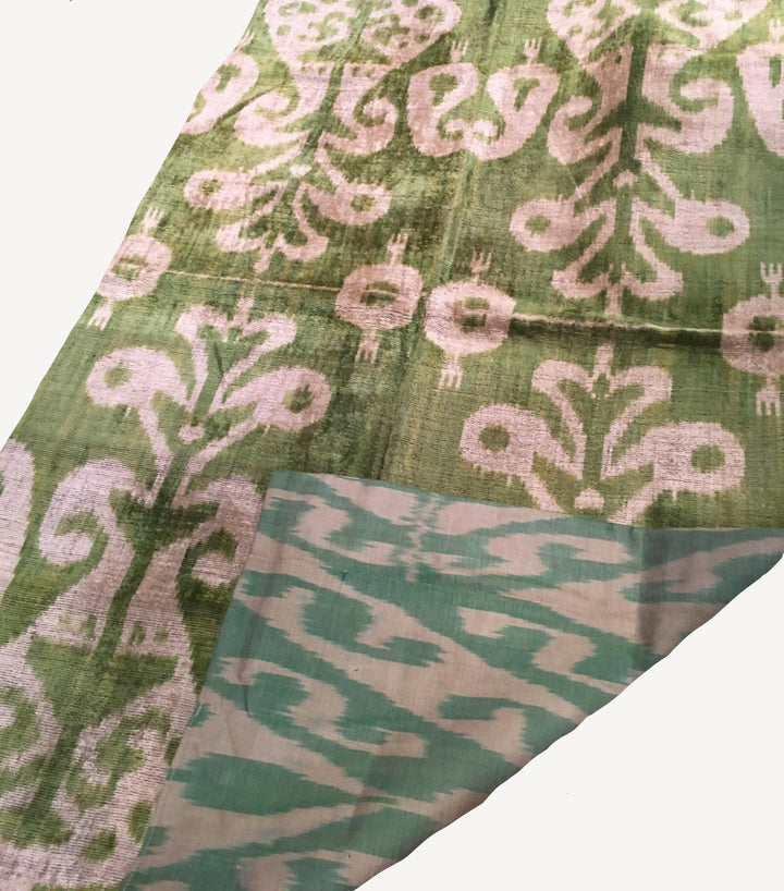 The Shepherd’s Indulgence - Green Emerald Velvet-Silk Ikat Throw-Blanket / Wall piece