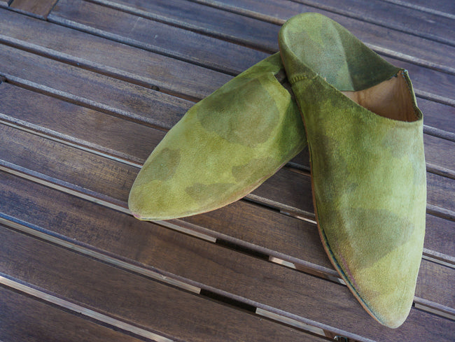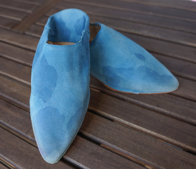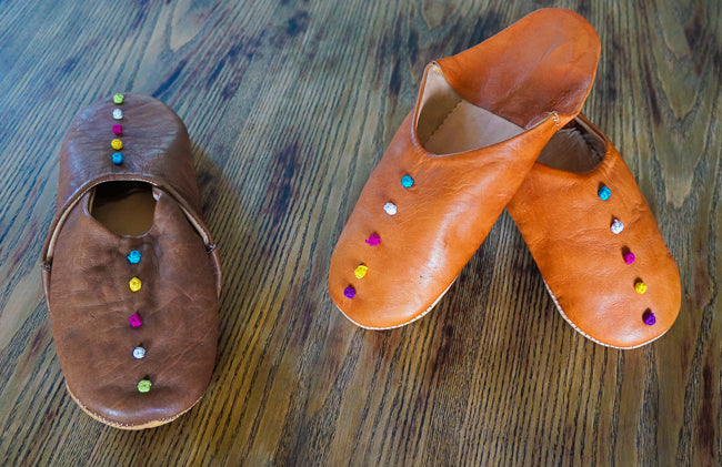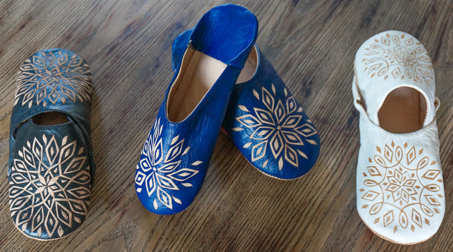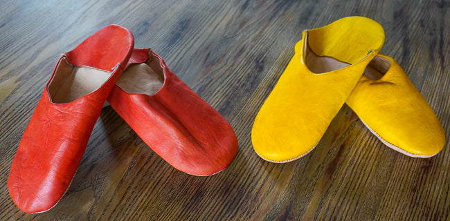 Our collection of Babouches is hand-crafted in Fez, in the Old Medina, just blocks away from where the leather is prepared and coloured in the famous tanneries.