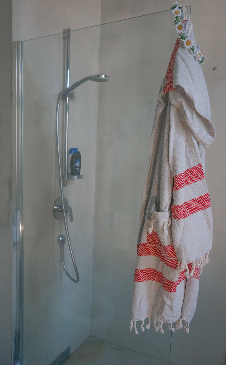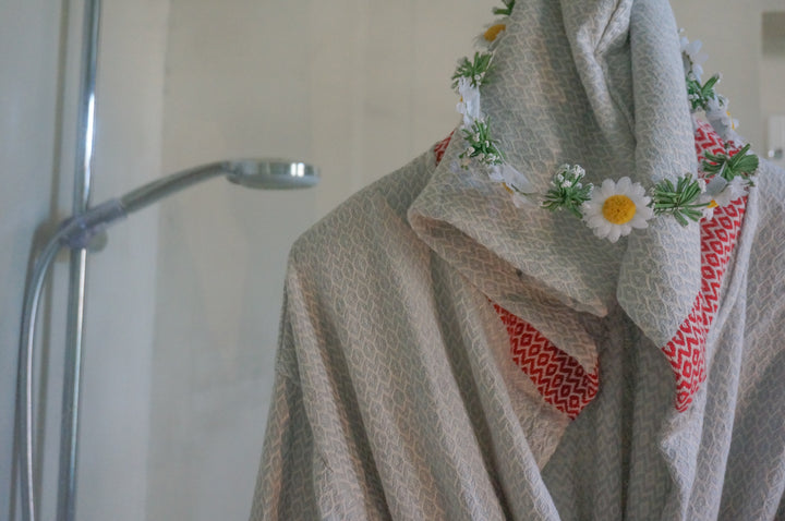 An overcoat for indoors and out. The Shepherd's Robe is made of two-and-a-half fine Turkish towels. It is equally cozy as it is practical - at the beach, in the sauna or at home. Dry yourself off, cover up or warm yourself up with timeless style.