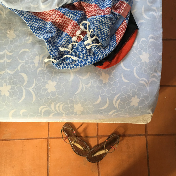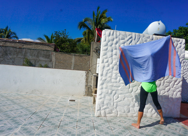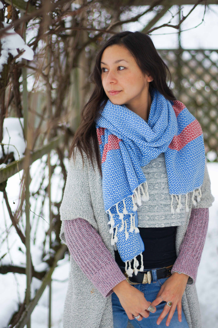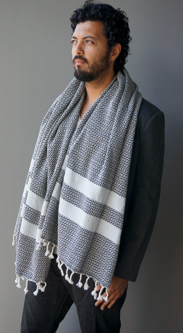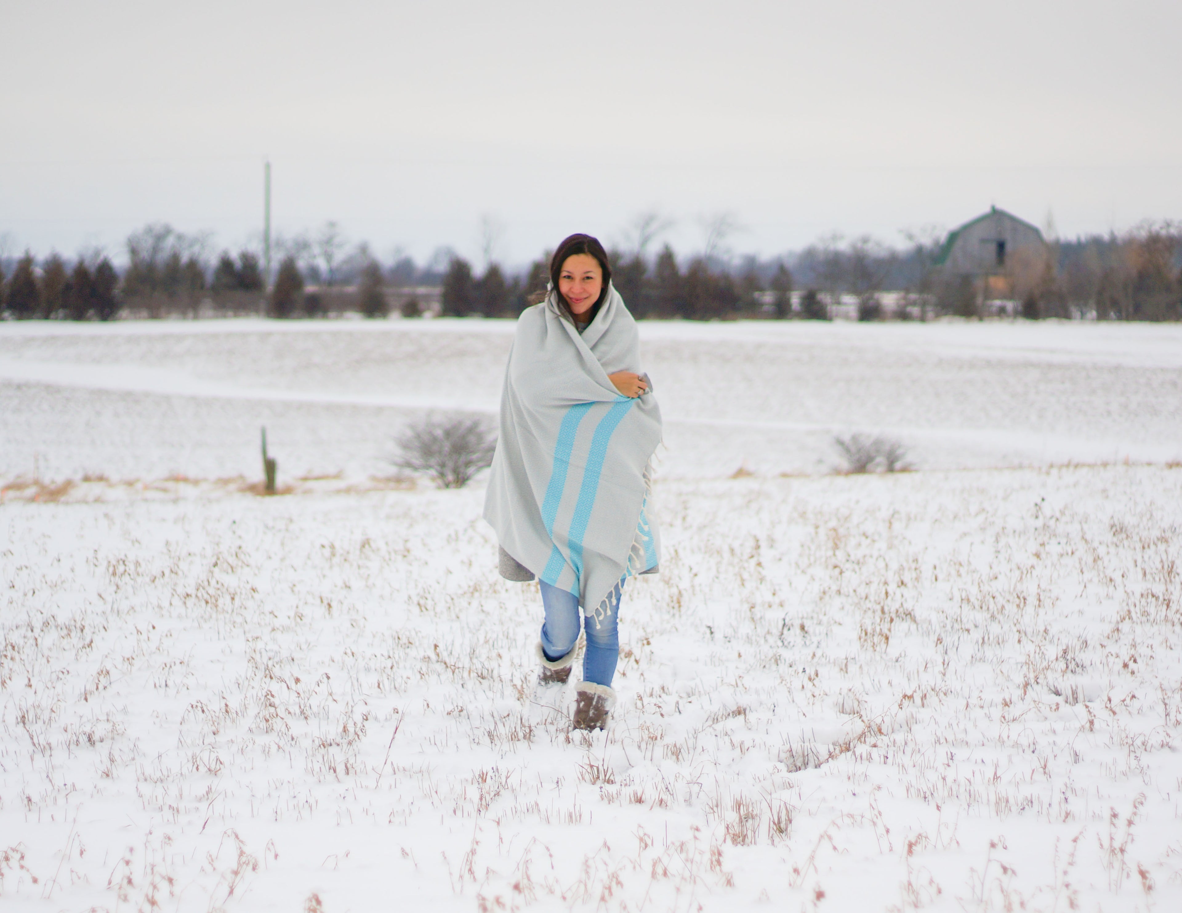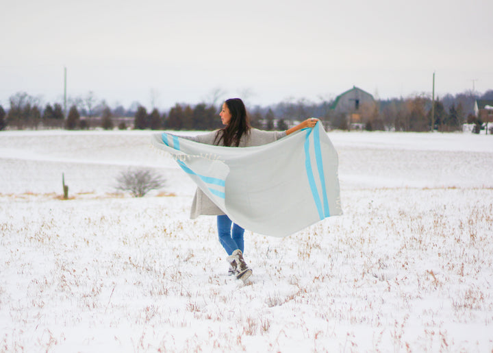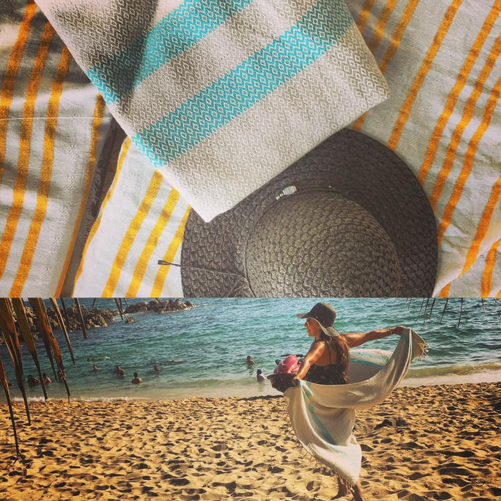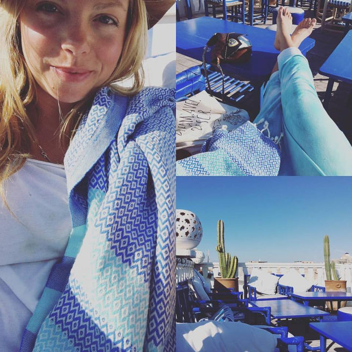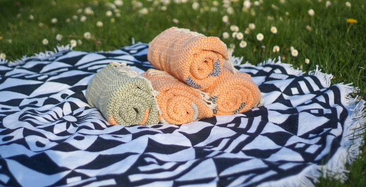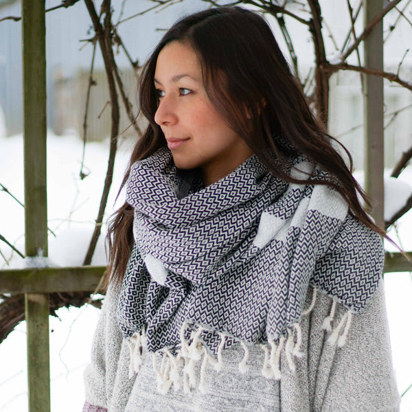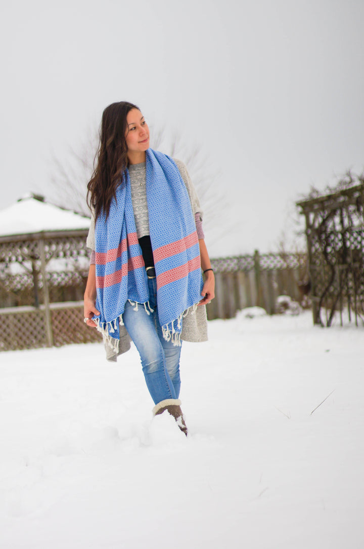 Wrapped around our neck at the beach, or under bums as a picnic blanket. Just as easily transitioned from yoga towel to snug shawl for the bike ride home, as thrown around our shoulders at dinner.